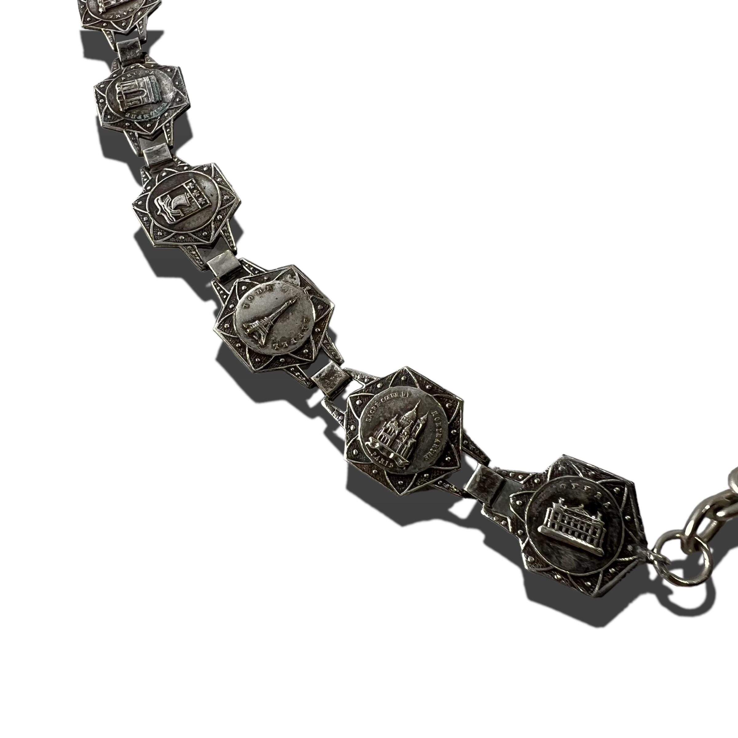【Antique Filigrane Depose】 French PARIS Souvenir Silver Tone Bracelet