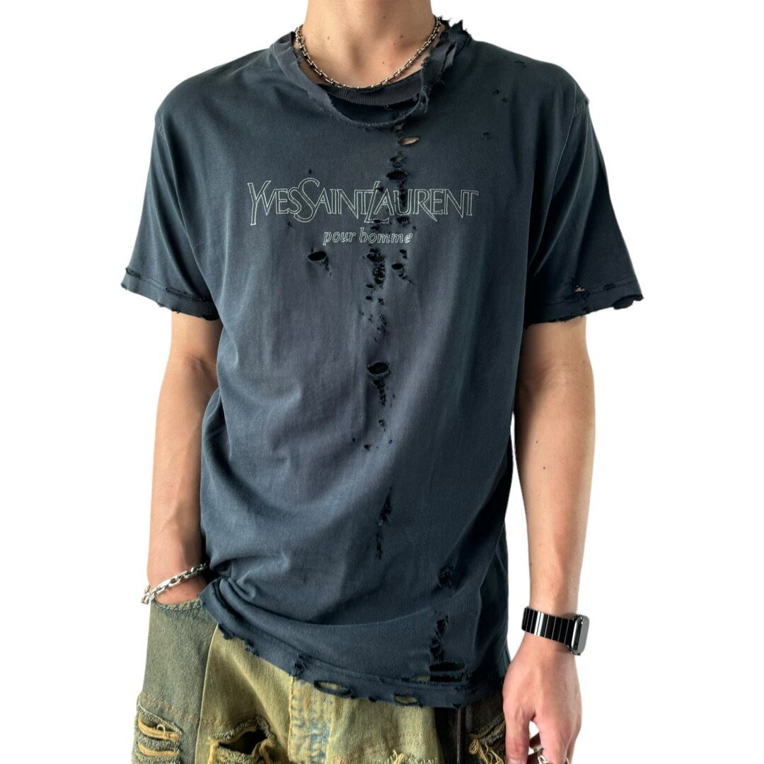 ♾YvesSaintLaurent♾ logo design crushed tee sizeM