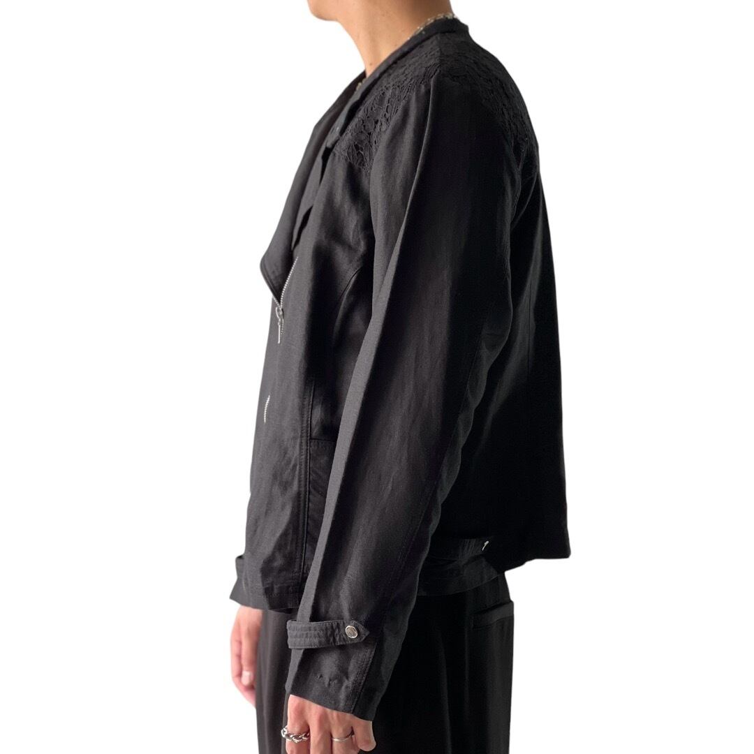 【ASHLEY STEWART】"Lace Design swiching pattern" linen rayon riders jacket