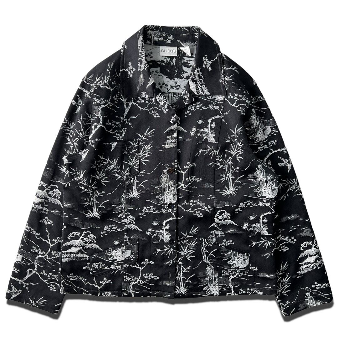 【CHICO'S】 Japanese Landscape embroidery pattern Woven Jacket
