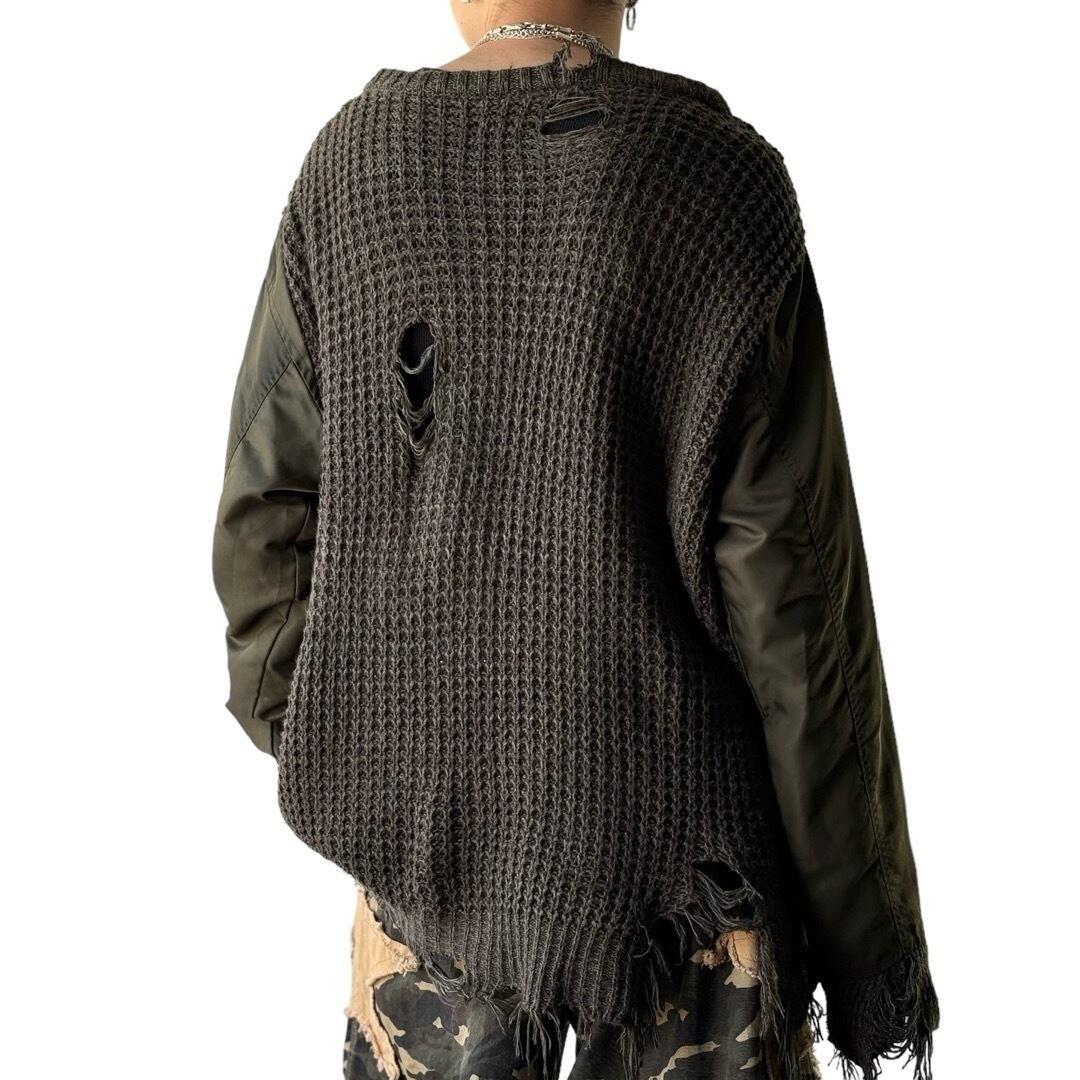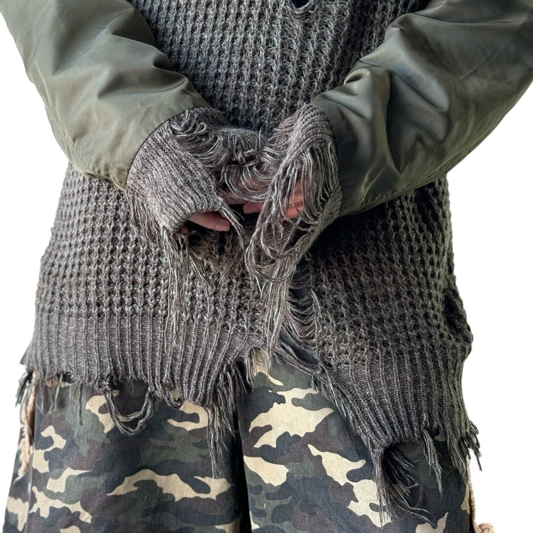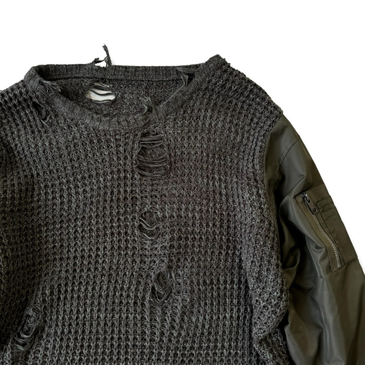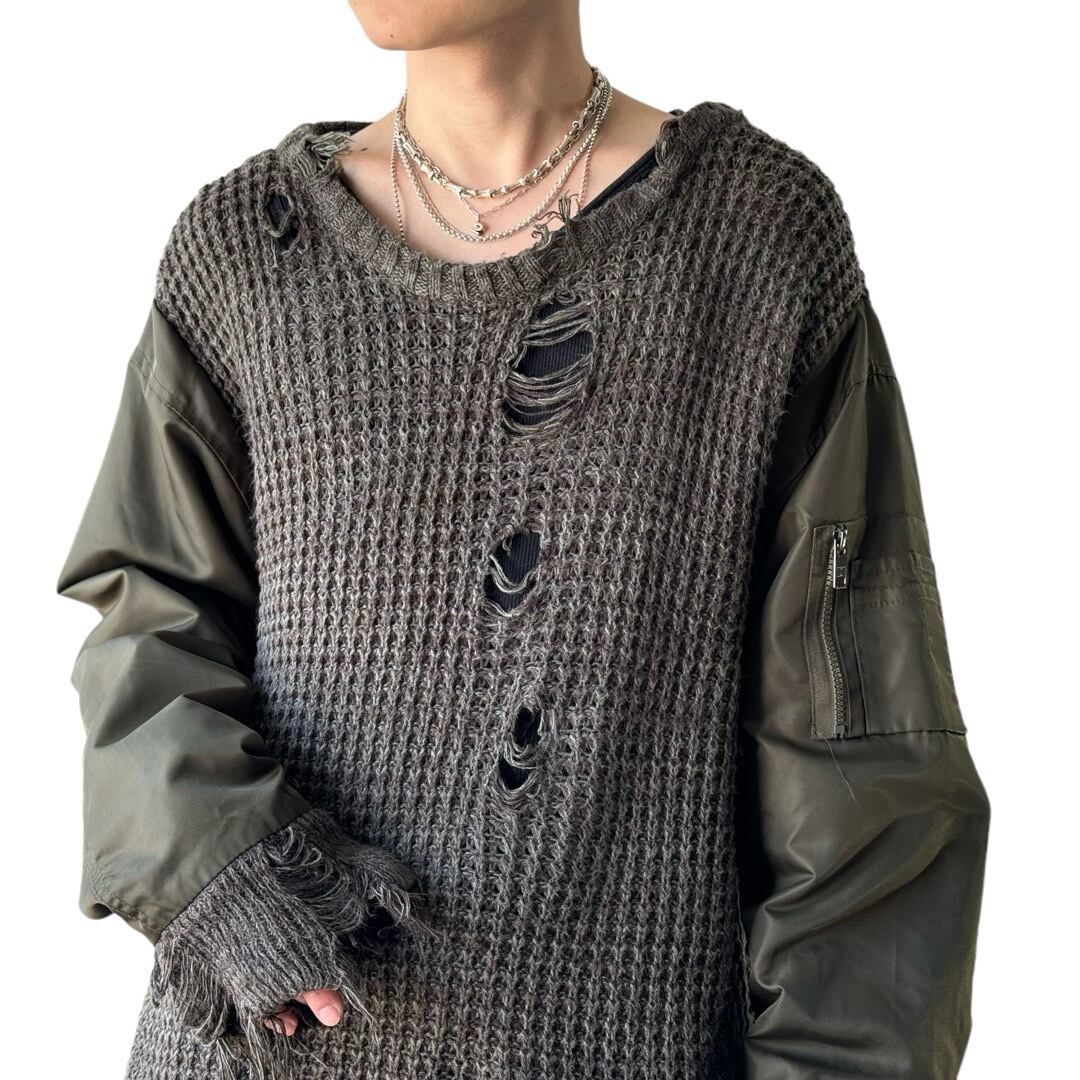 ️両袖のスウィッチングに全体に施したダメージ加工が超かわいいデザインオーバーニット!!!