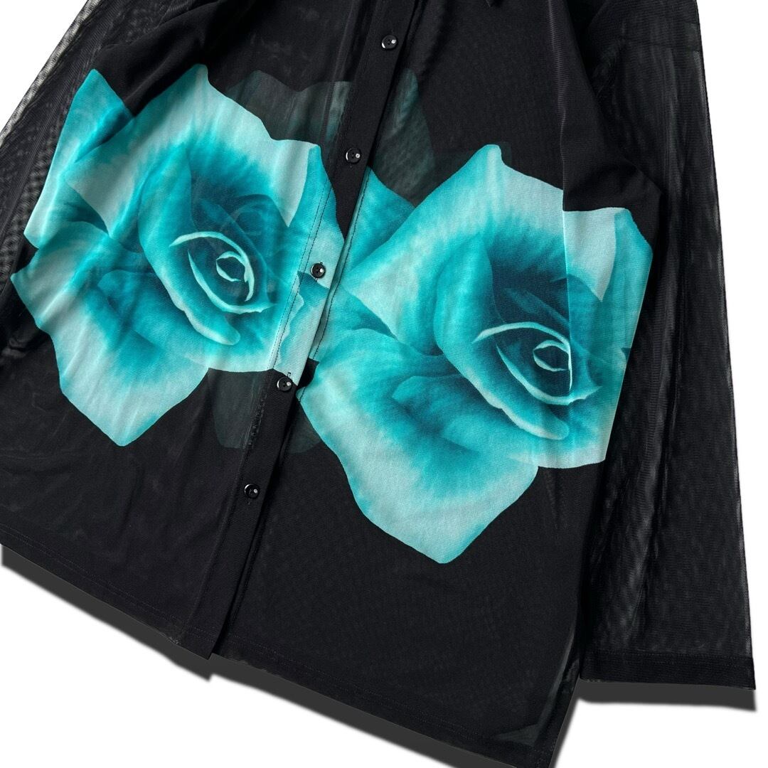 大判なフラワーモチーフのお上品な雰囲気漂うデザインメッシュシャツ!