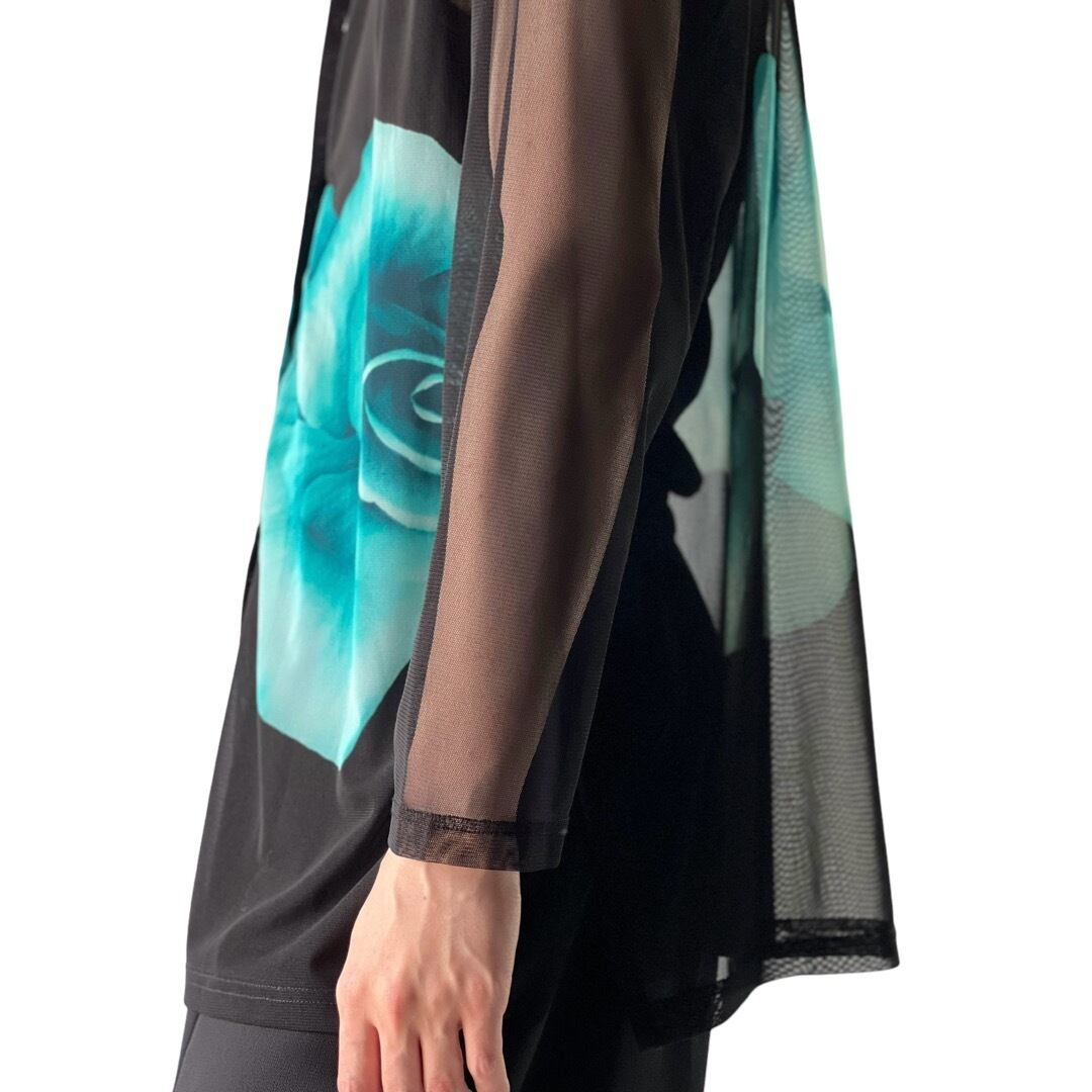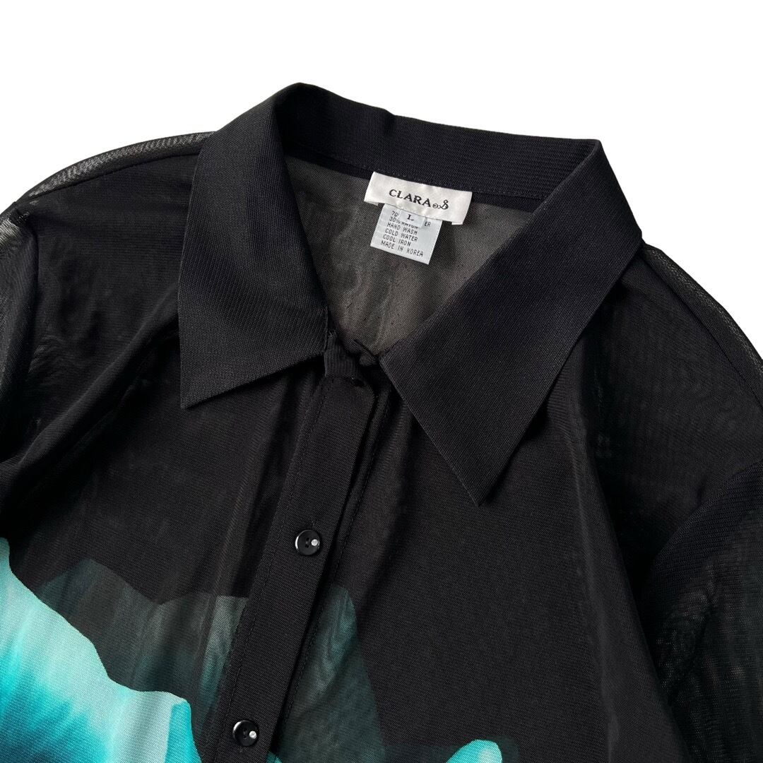 【CLARA】Rayon Poly mesh Flower graphic pattern shirt