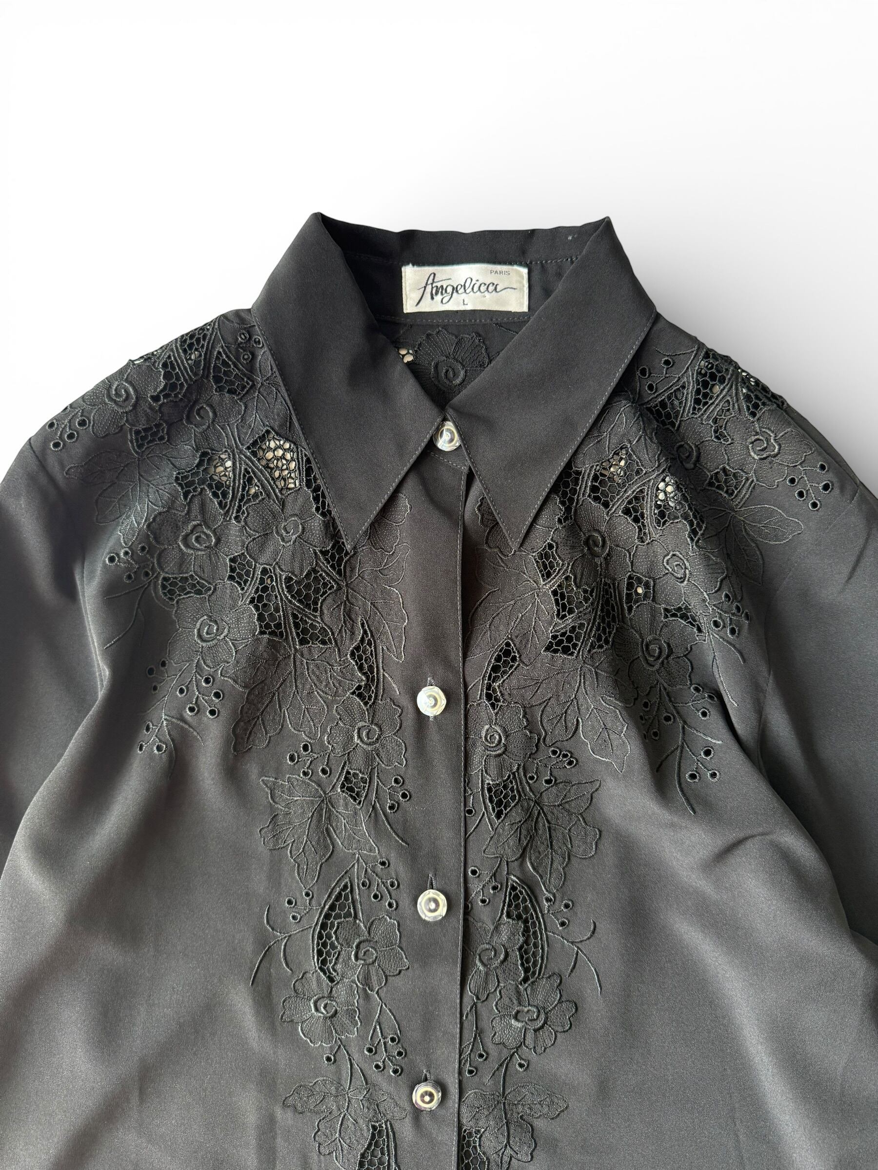 【Angelica PARIS】 Cutwork pattern swiching dress shirt L/S