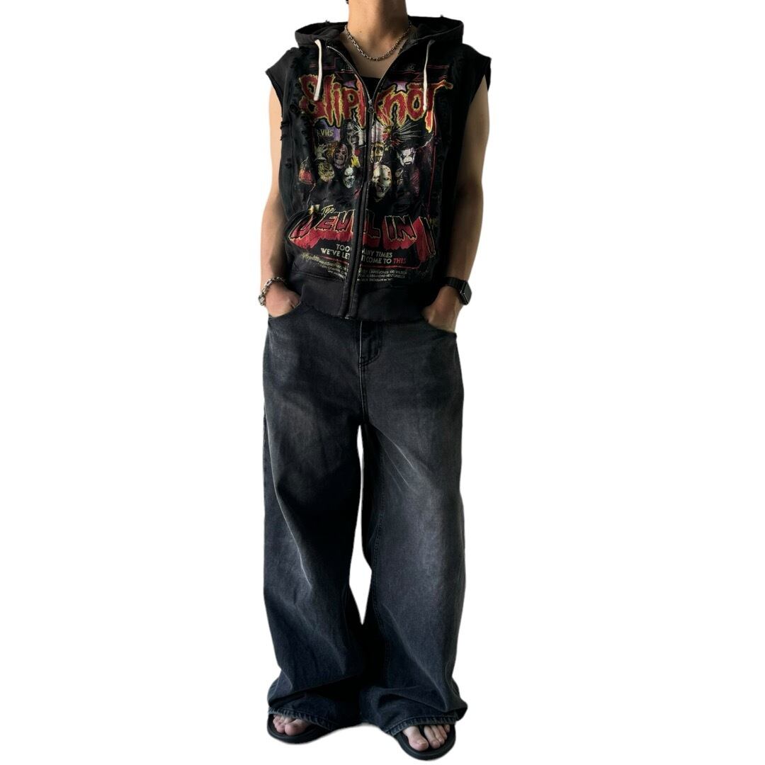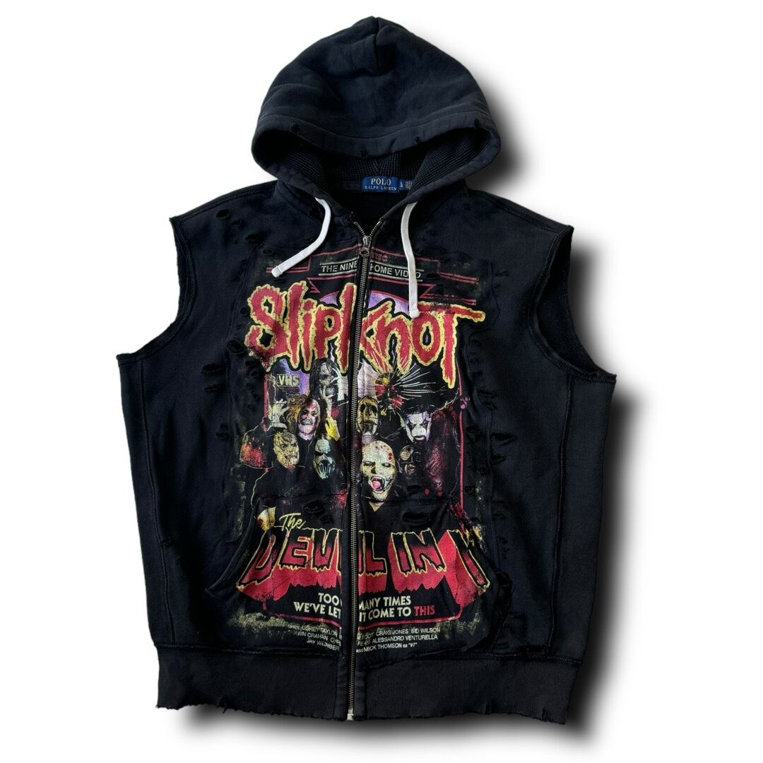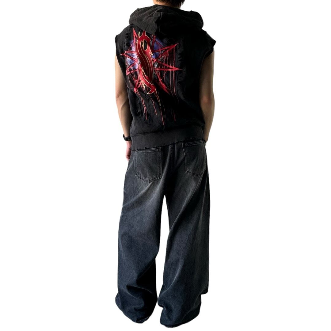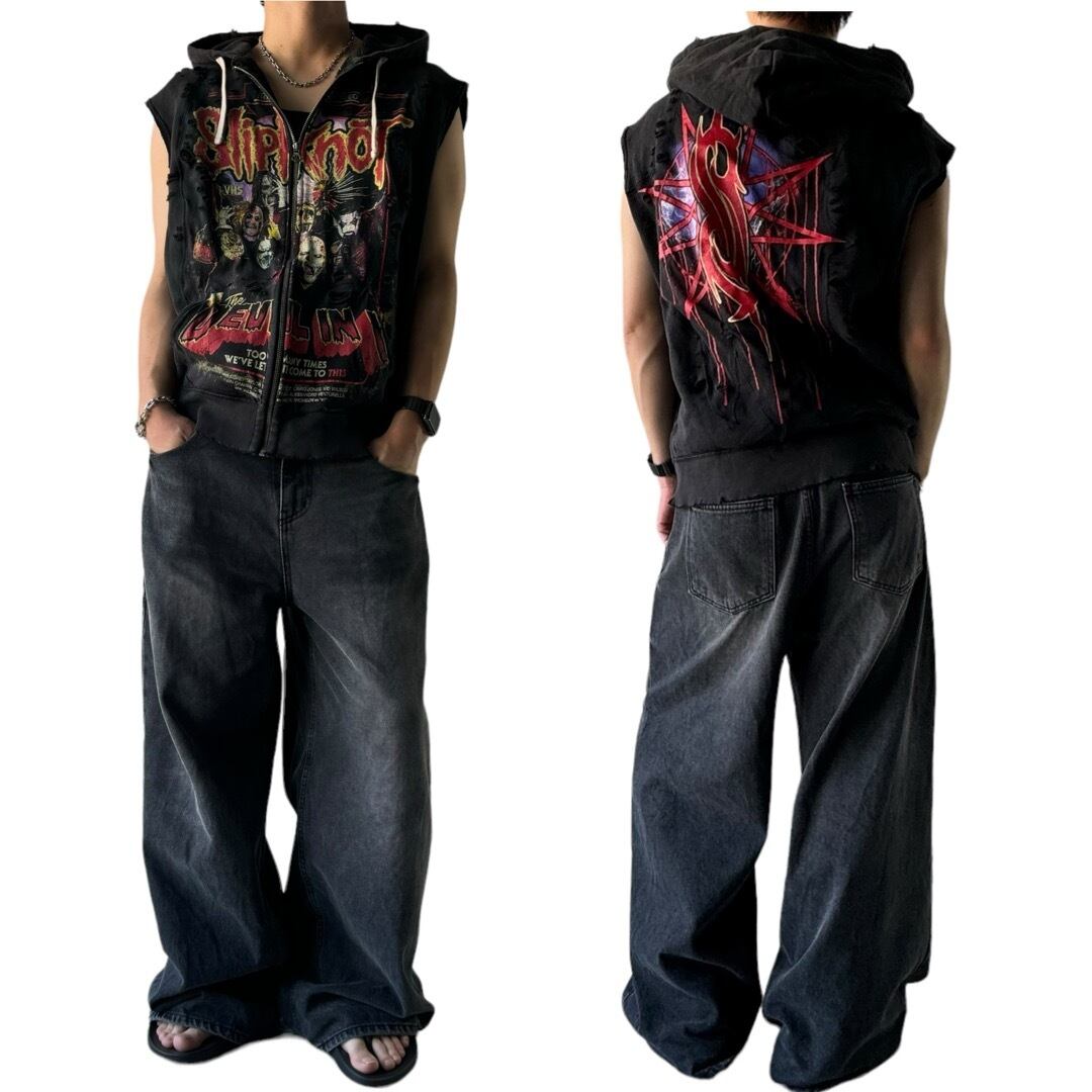 ♾ORIGINAL REMAKE♾ " SlipKnoT " design crushed sleeve less zip up hoodie