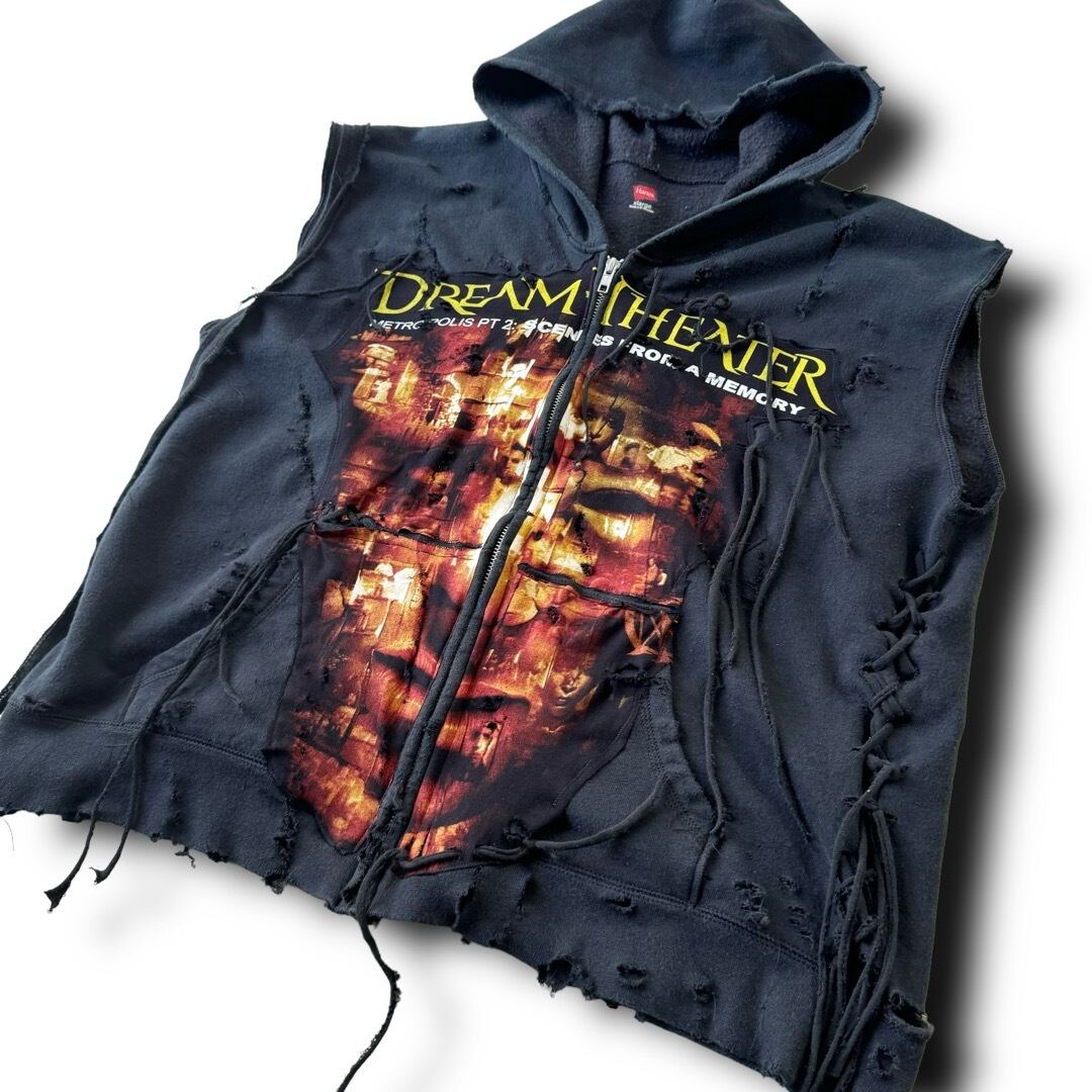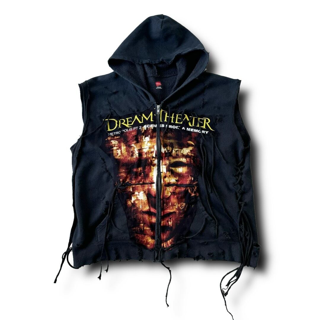 ♾ORIGINAL REMAKE♾ " Dream Theater " design crushed sleeve less zip up hoodie