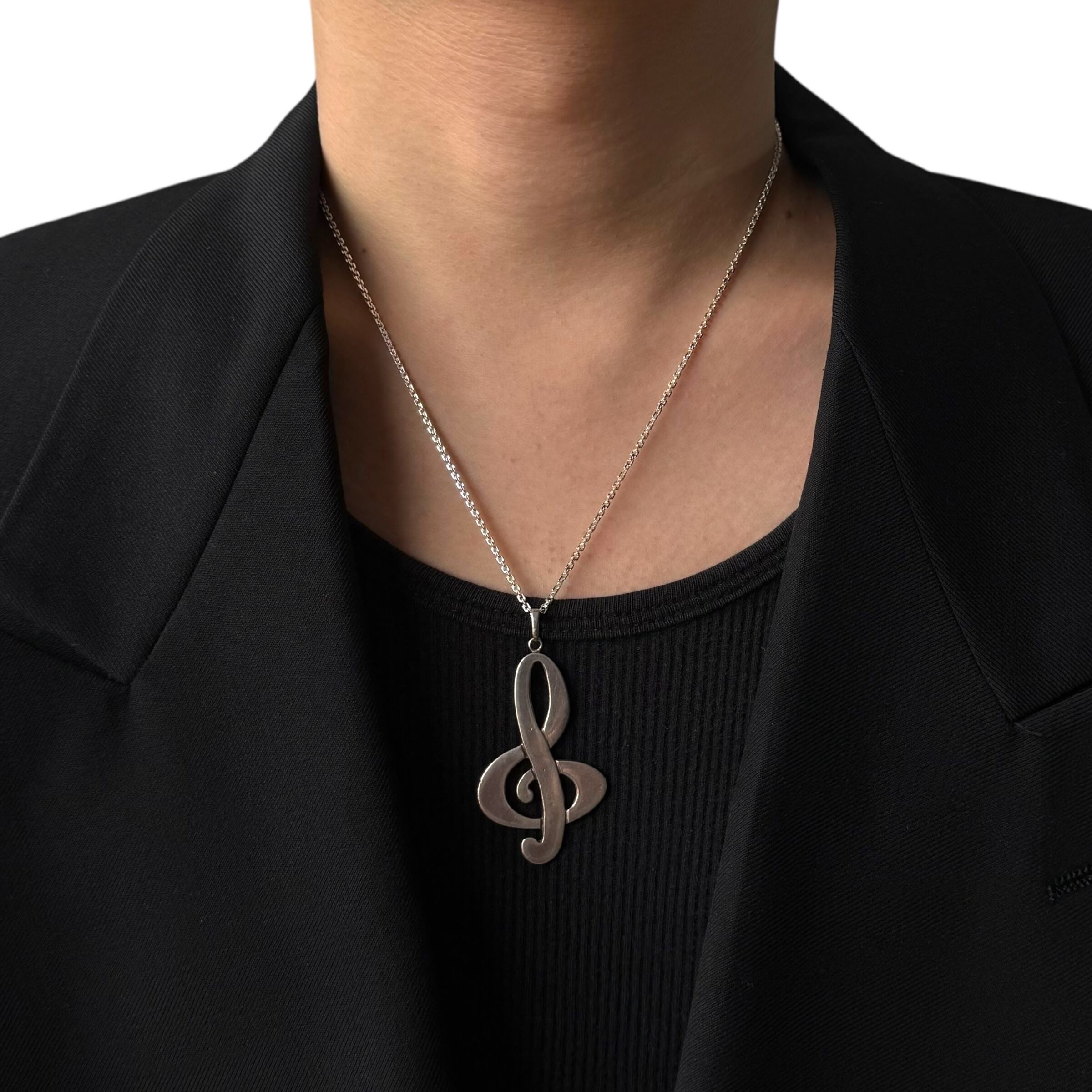 ♾vintage silver jewelry♾ treble clef motif design pendant top necklace sv925 MADE IN ITALY