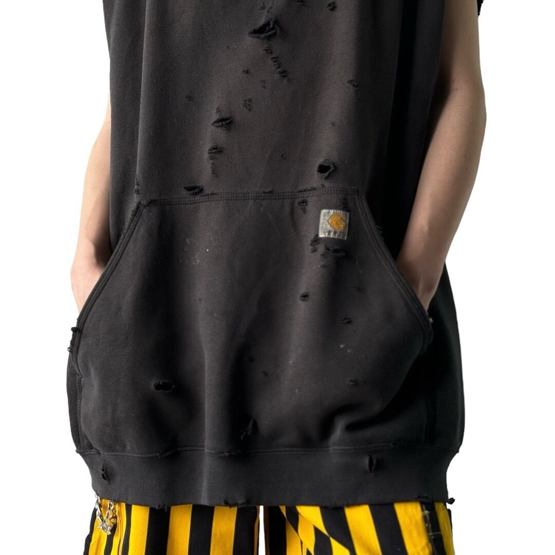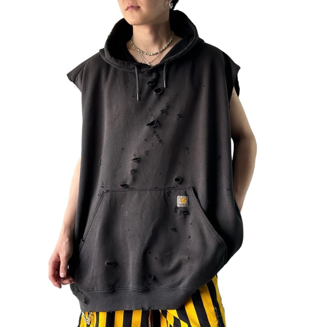 超絶ビッグなシルエットにクラッシュ加工を施したデザインスリーブレスカスタムフーディー!