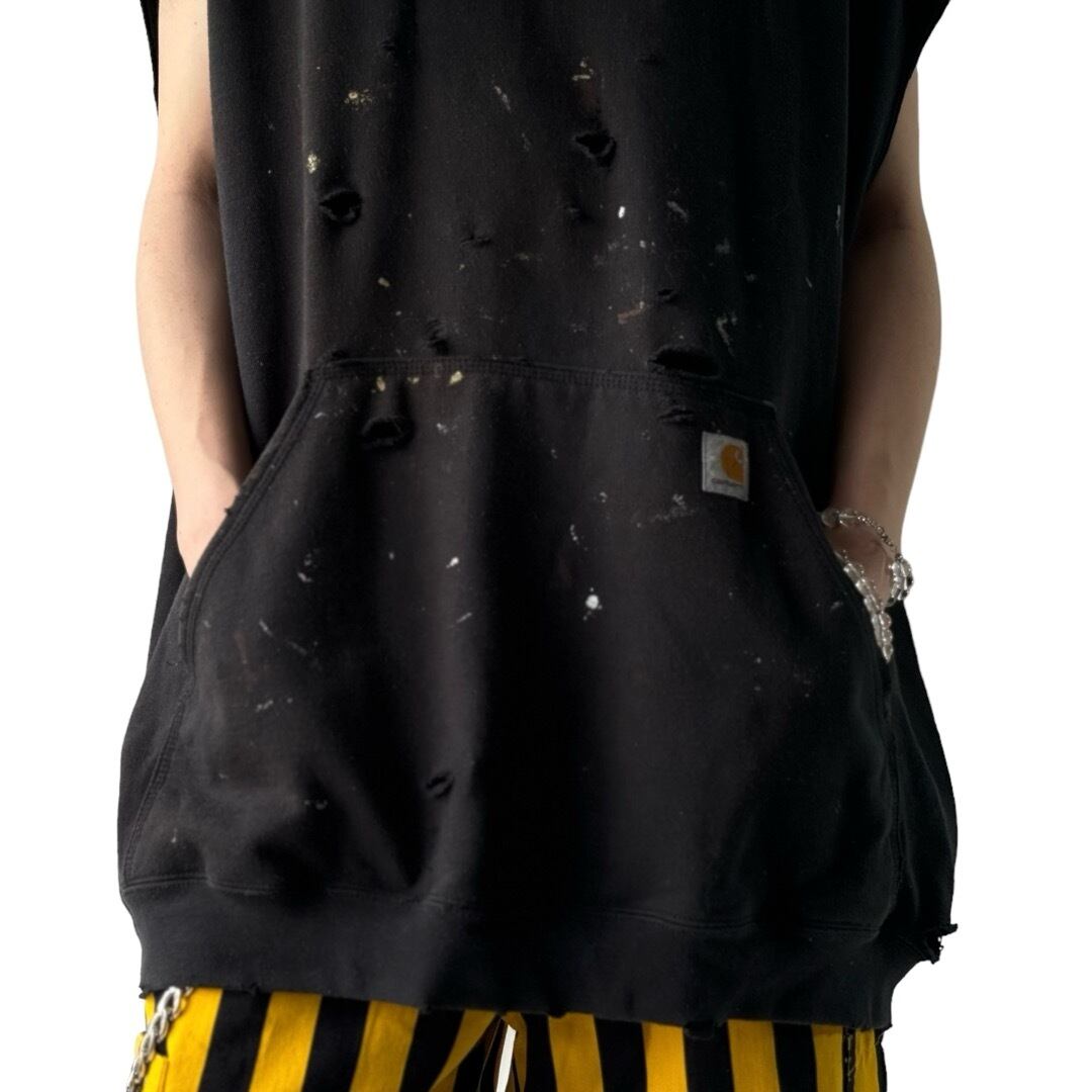 超絶ビッグなシルエットにクラッシュ加工を施したデザインスリーブレスカスタムフーディー!