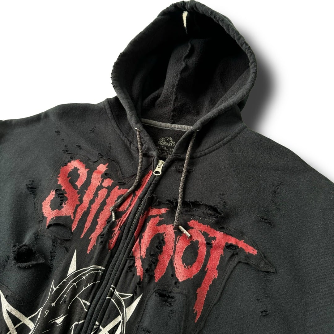 SlipKnoTのインパクト抜群なカスタムにダメージ加工を施したスリーブレスジップフーディー‼️