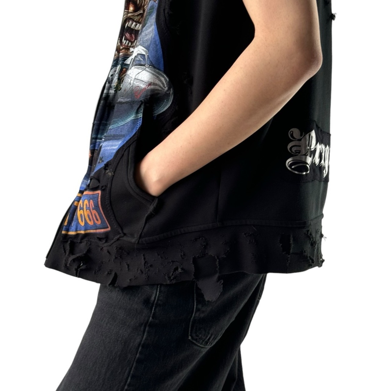 ♾ORIGINAL REMAKE♾ "IRON MAIDEN" custom crushed design sleeveless zip hoodie size L