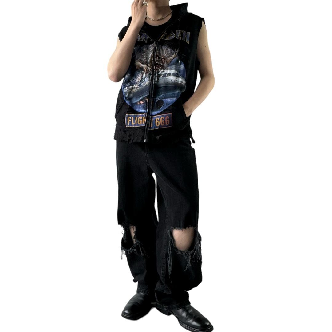 アイアンメイデンのインパクト抜群なカスタムにダメージ加工を施したスリーブレスジップフーディー‼️