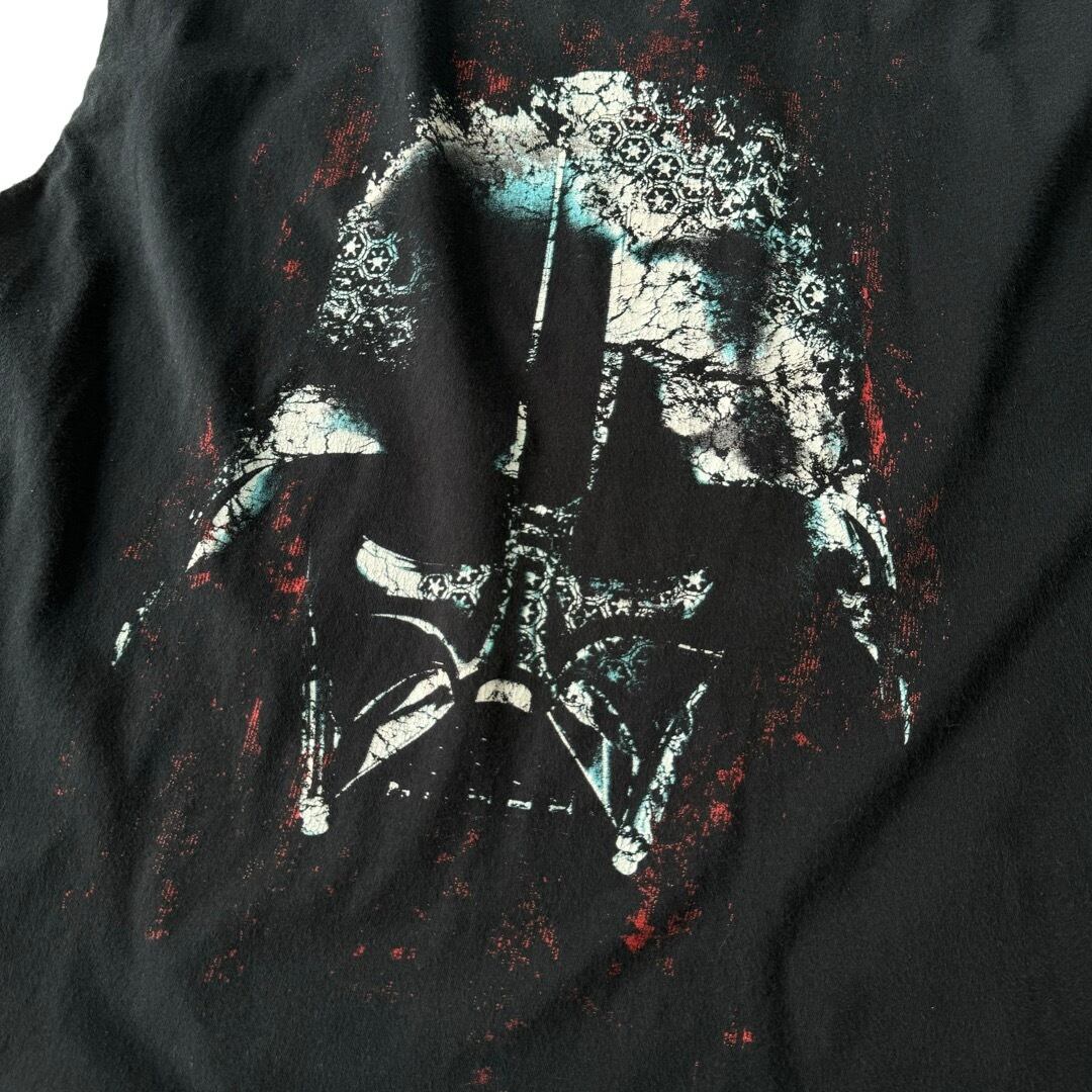 プリントのガスガス感とさり気ないダメージ加工、ダースベイダーの青色もいい感じに馴染んでおり、クタッとした質感にゆるさのあるサイジングで文句なし!