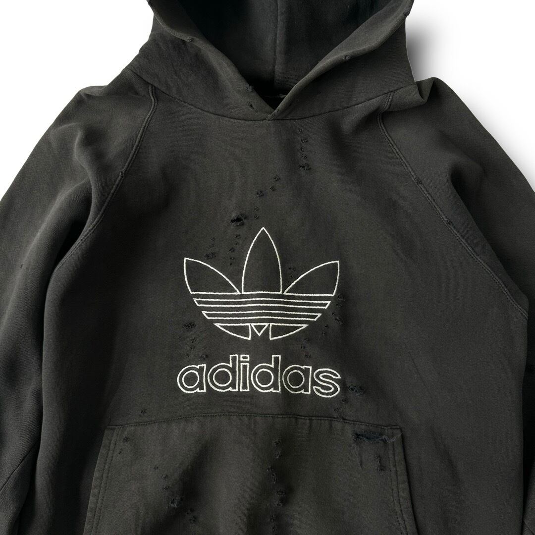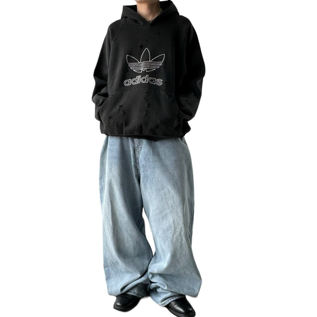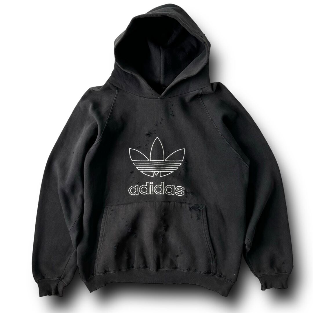 ♾vintage adidas♾ design crushed hoodie MADE IN U.S.A.