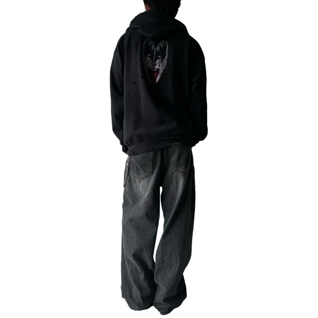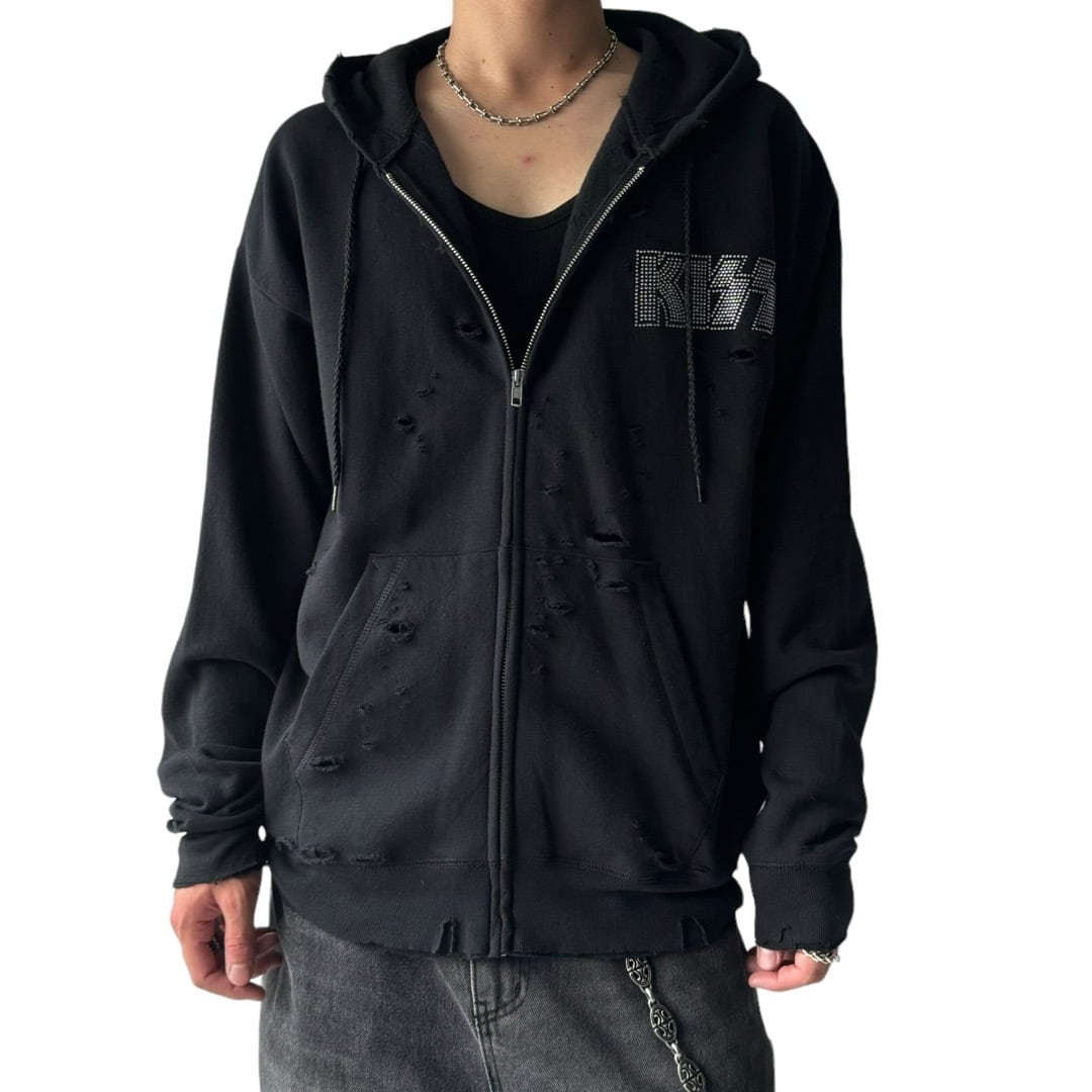 ♾️KISS♾️ design cz crushed zip up hoodie size L