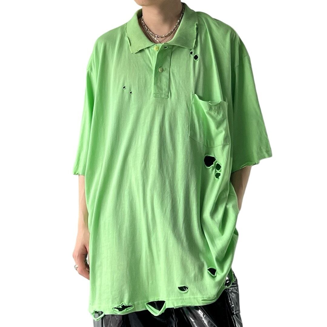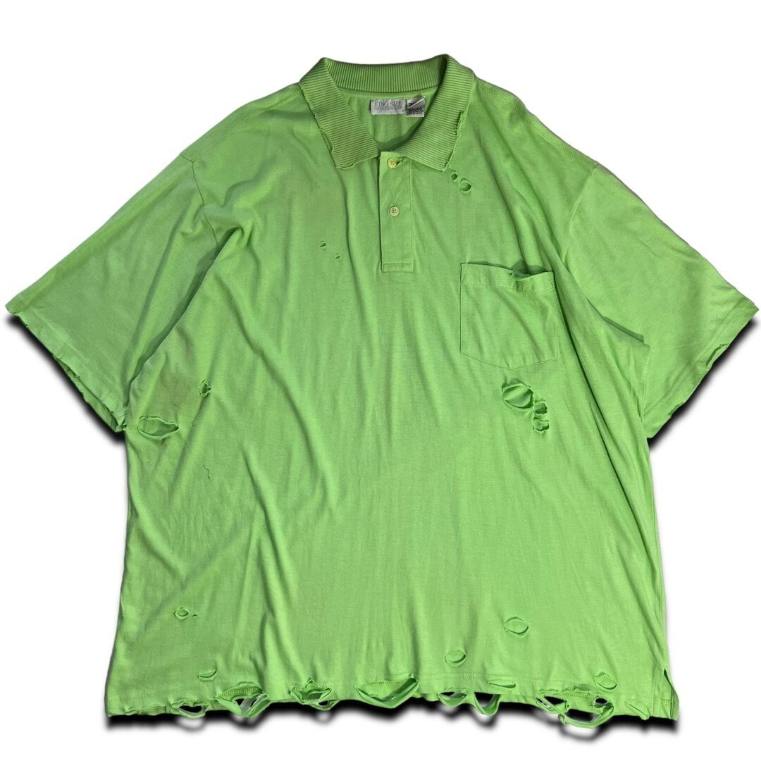 【90s KINGSIZE】 Damage Design Big Polo Tee -size:3XL-