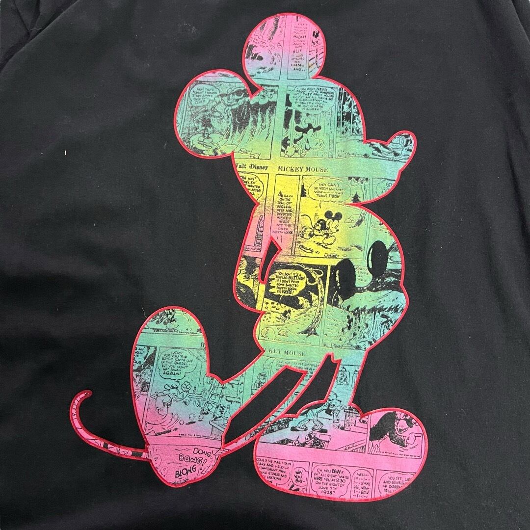 大判なミッキーシルエットのプリントに最初期の映画『蒸気船ウィリー』のコミカルなコマ絵が描かれた隠れミッキー☝️✨