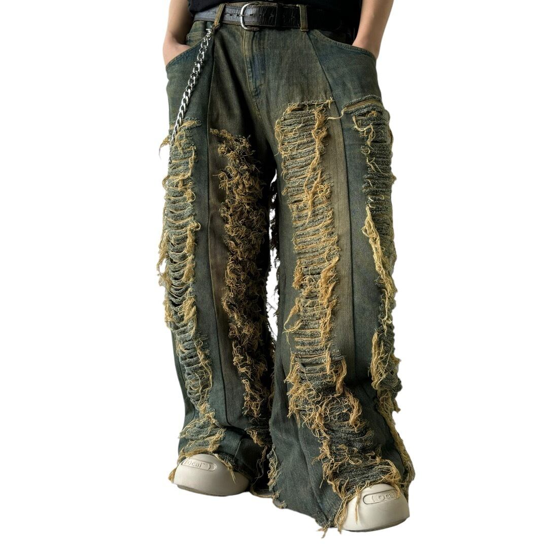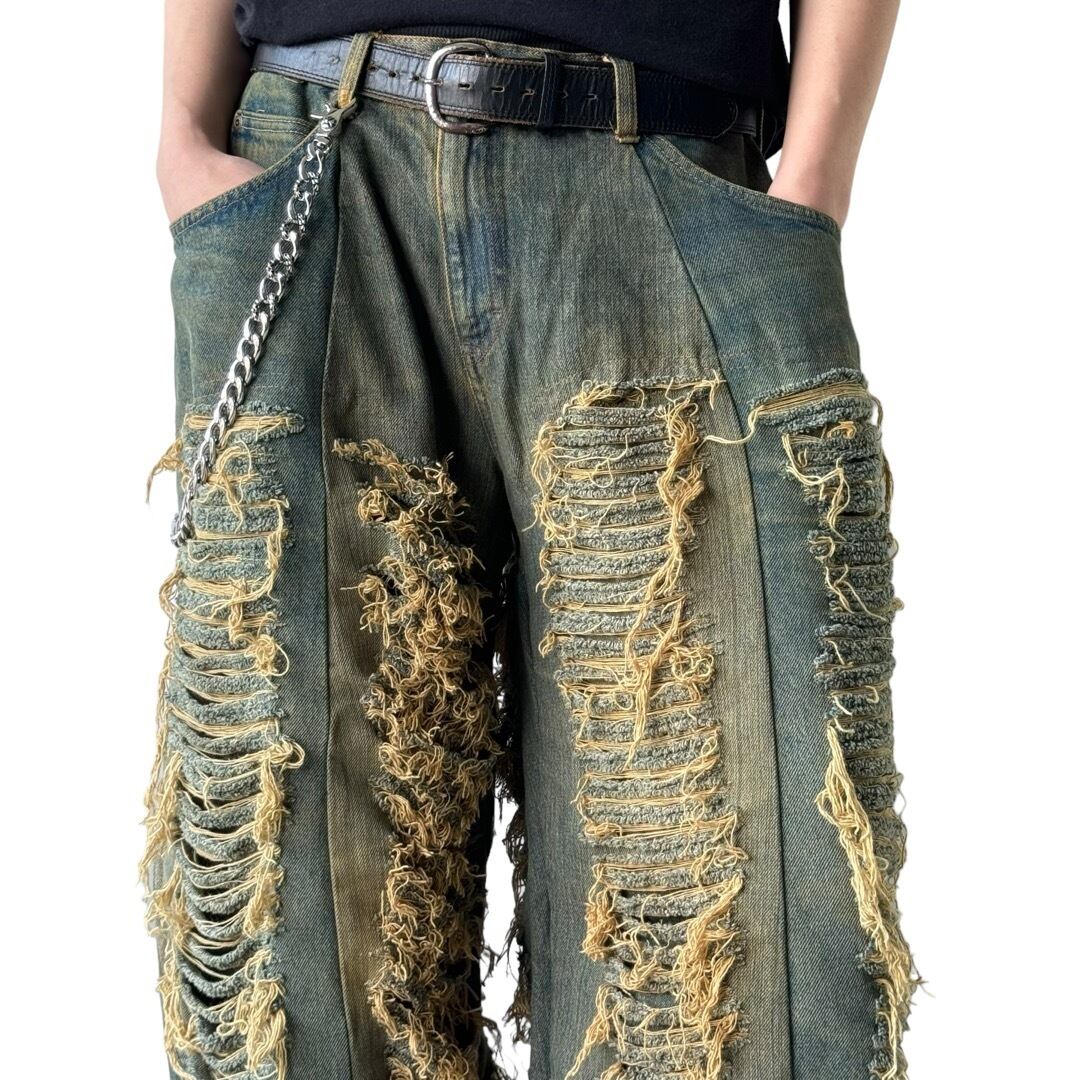 数本のデニムを足して作られているので通常ではあり得ない袴のように広がるメガワイドシルエット❗️