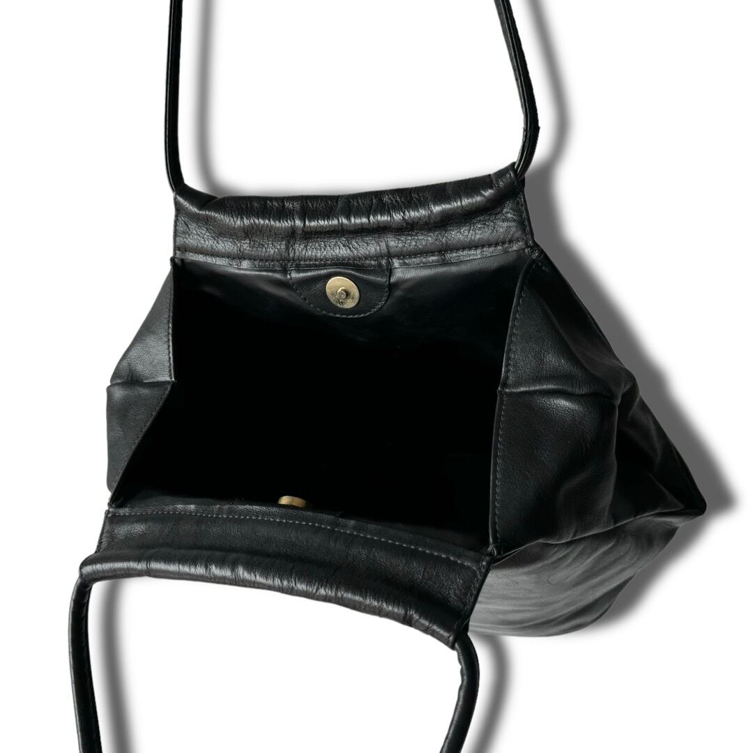 しなやかかつ上品な印象のレザーが使用されており、色は安定ブラック◎さり気ないNRのメタルパーツもいいアクセント!