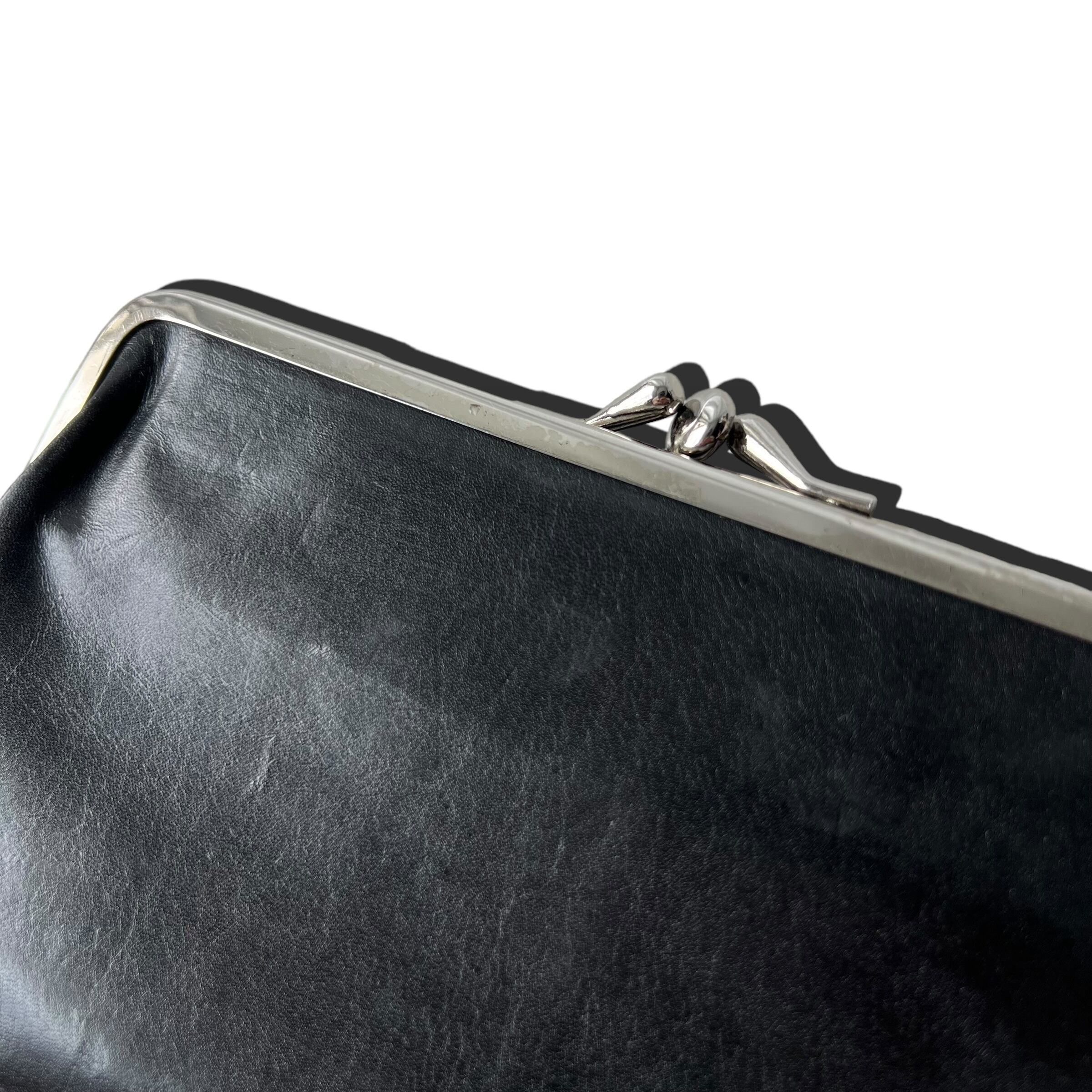 レザー特有のシワ感や古傷あり、がま口内部多少の劣化がございます。細かい粉がついてしまうことがございますので使用の際はお気をつけください。