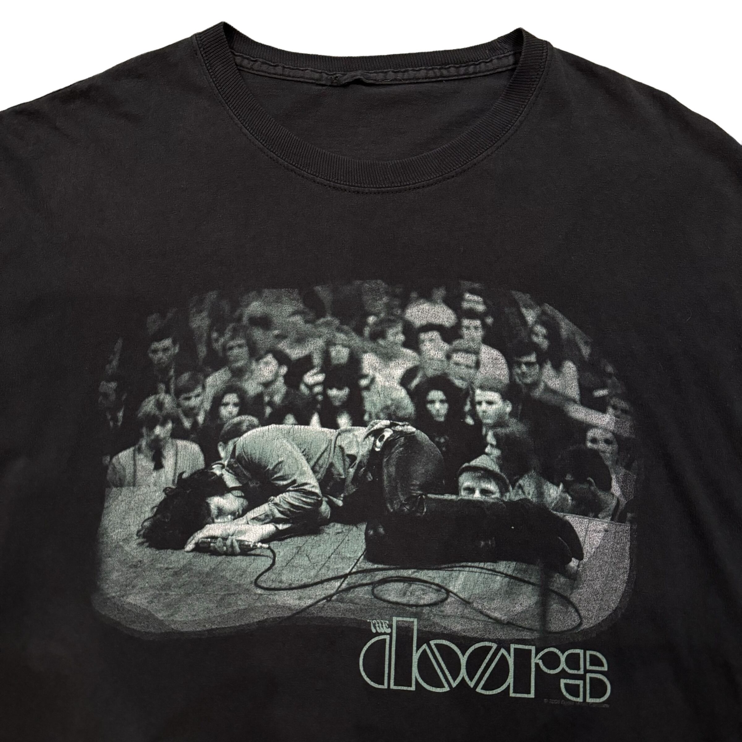 ボーカル、ジム・モリソンがステージ上で寝そべる(倒れる?)アイコニックなフォトプリントデザインをフロントに.