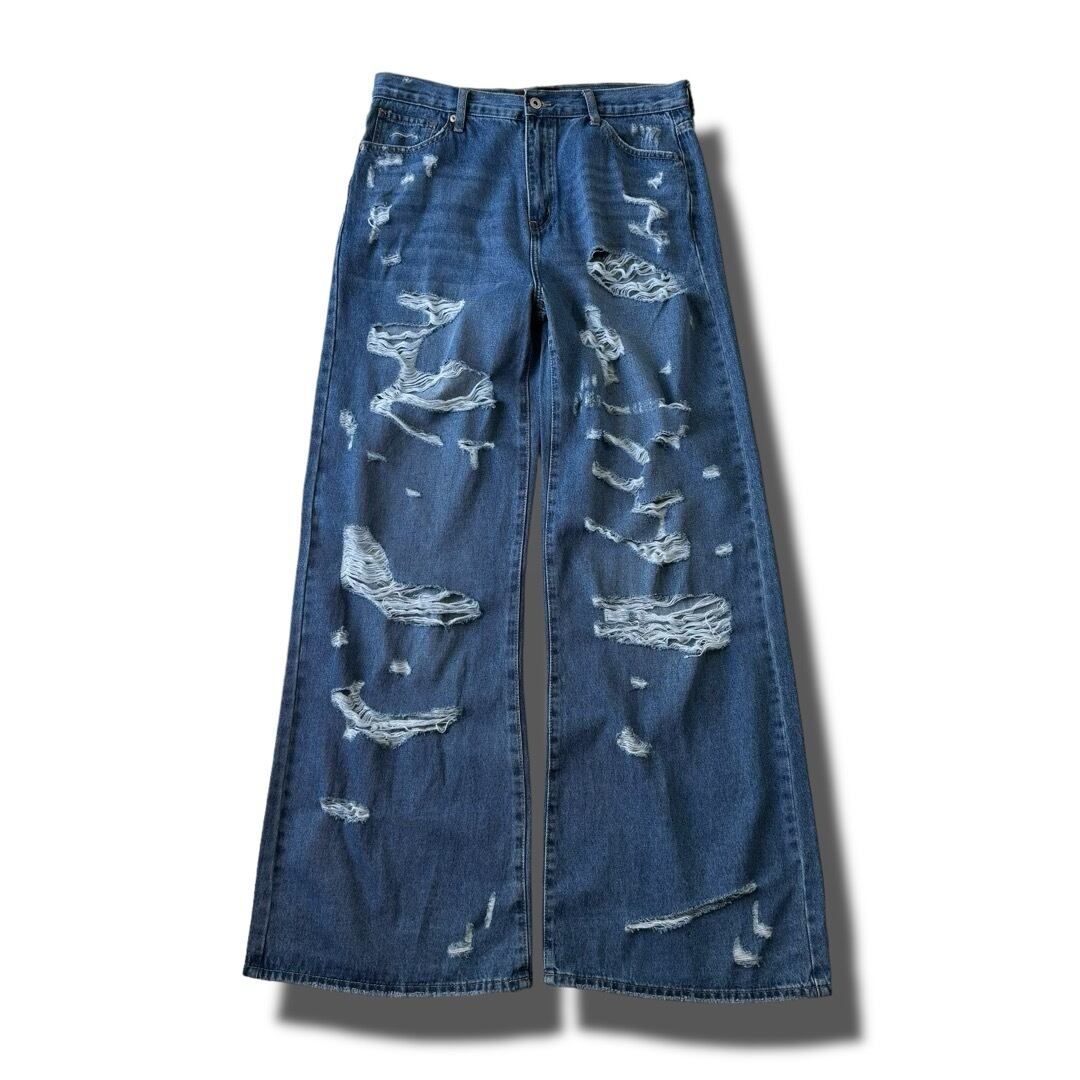ズドンとわたりから太いまま落ちる存在感あるメガワイドフレアシルエット◎