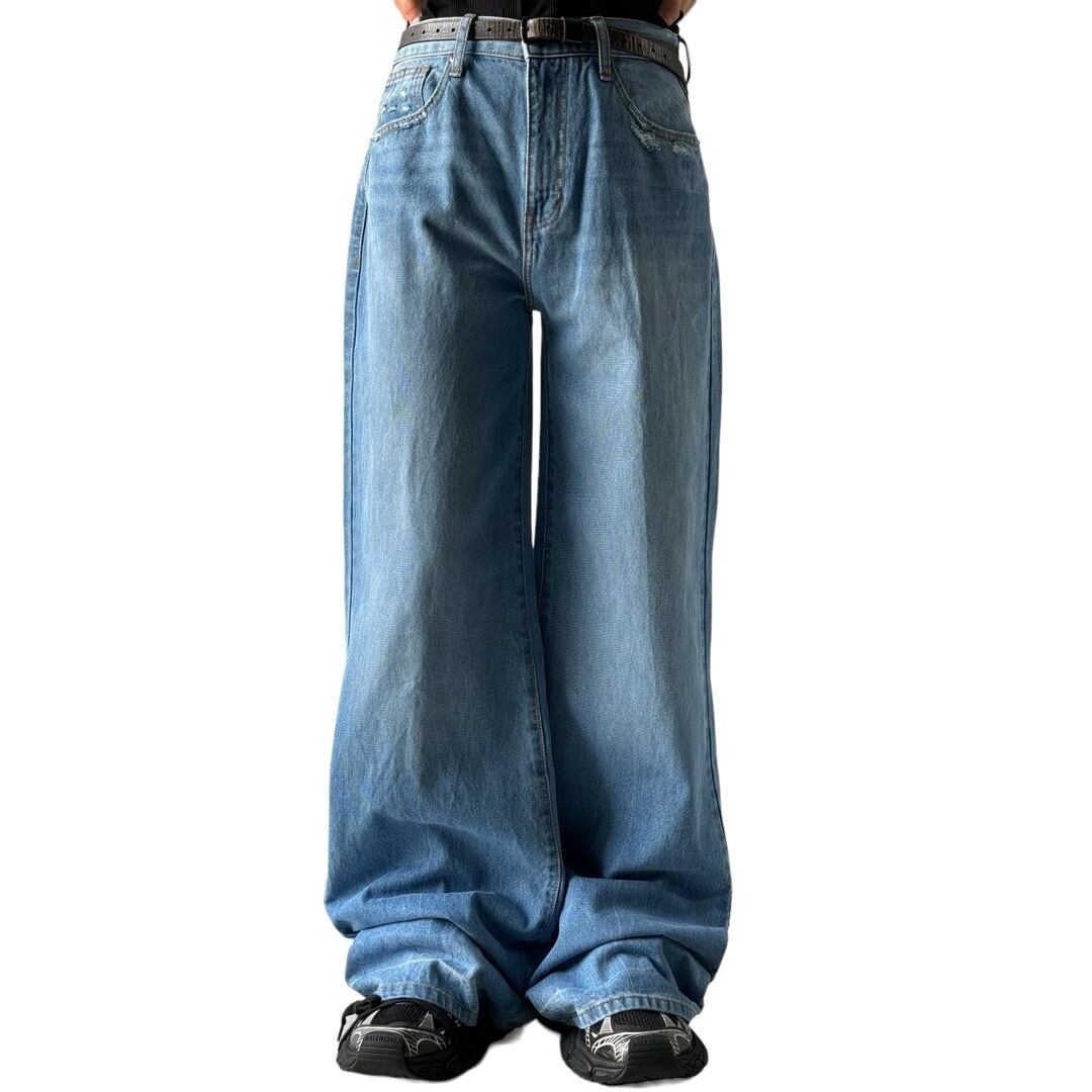 程よいクラッシュ加工がアクセントになった圧倒的ワイドバギーフレアデニムパンツ❕