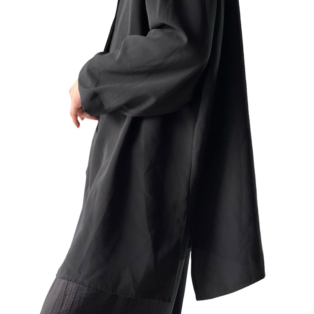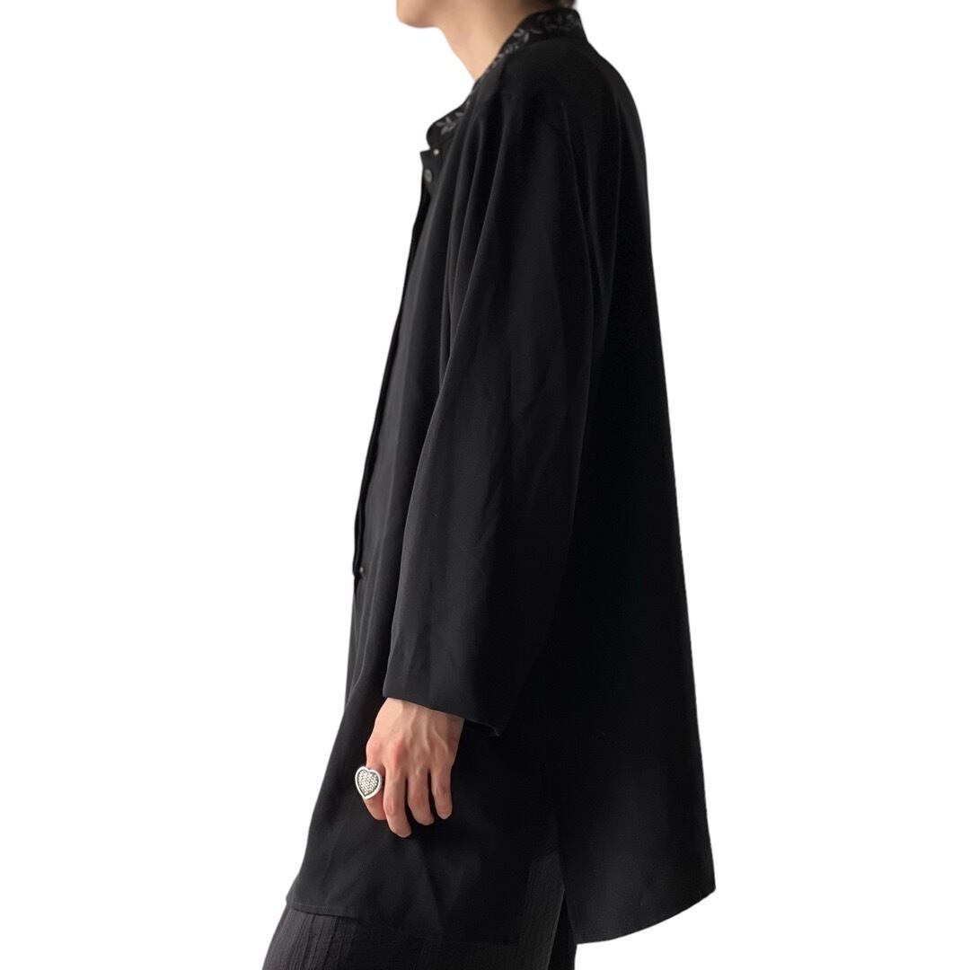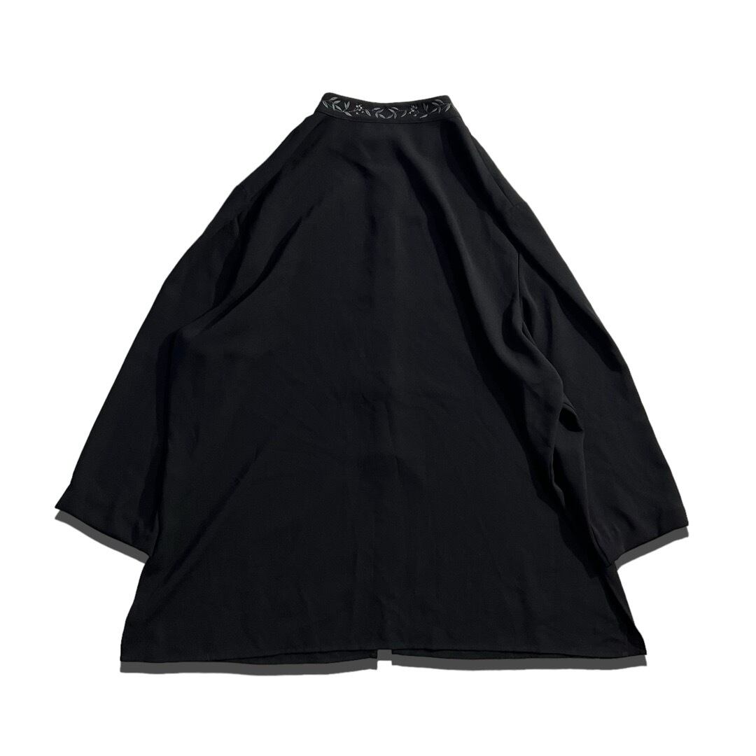 【MAGGIE】 Slit detail Design Embroidery Fly front shirt -Black colours-