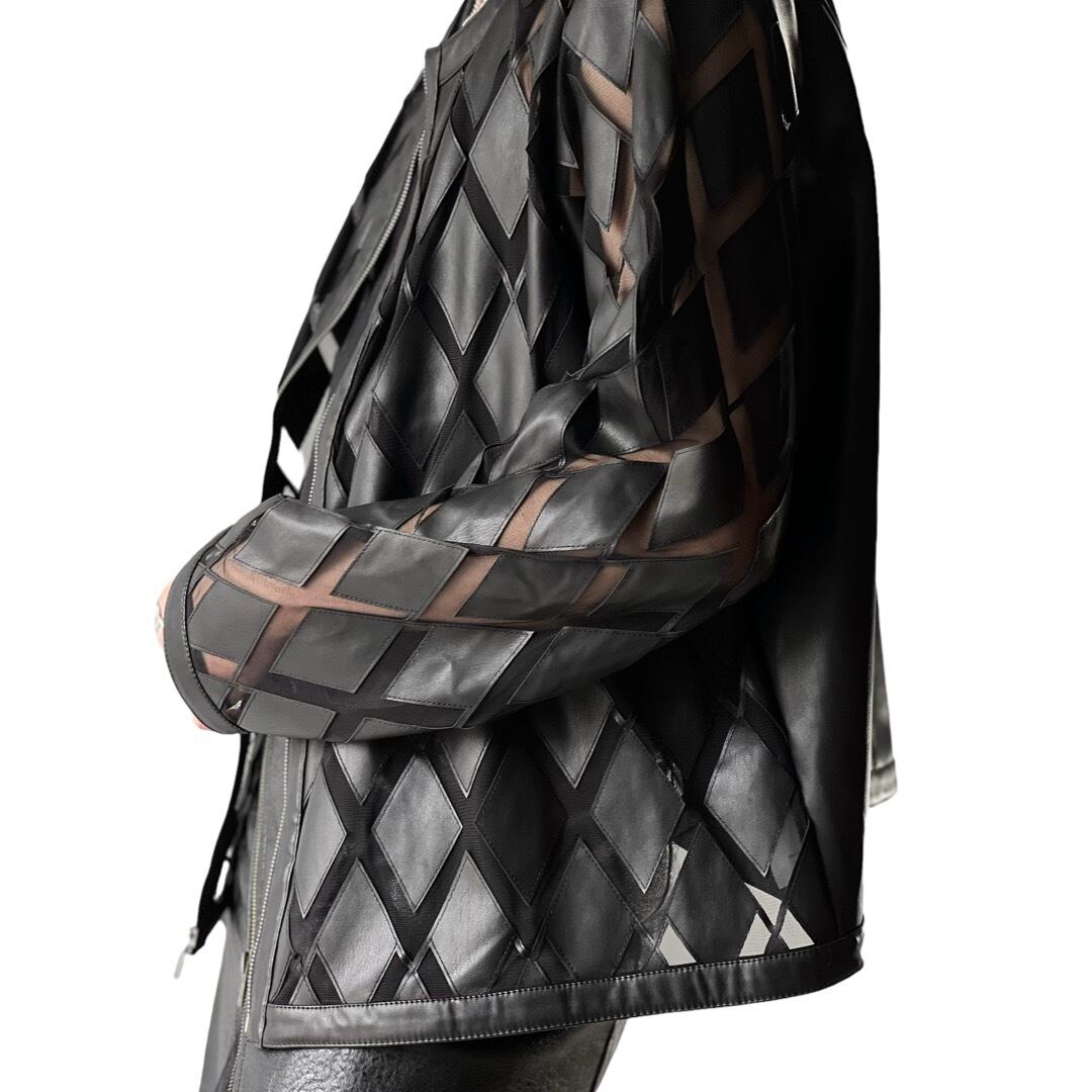 【COLLEEN LOPEZ】 Mesh pattern Design Leather zip jacket
