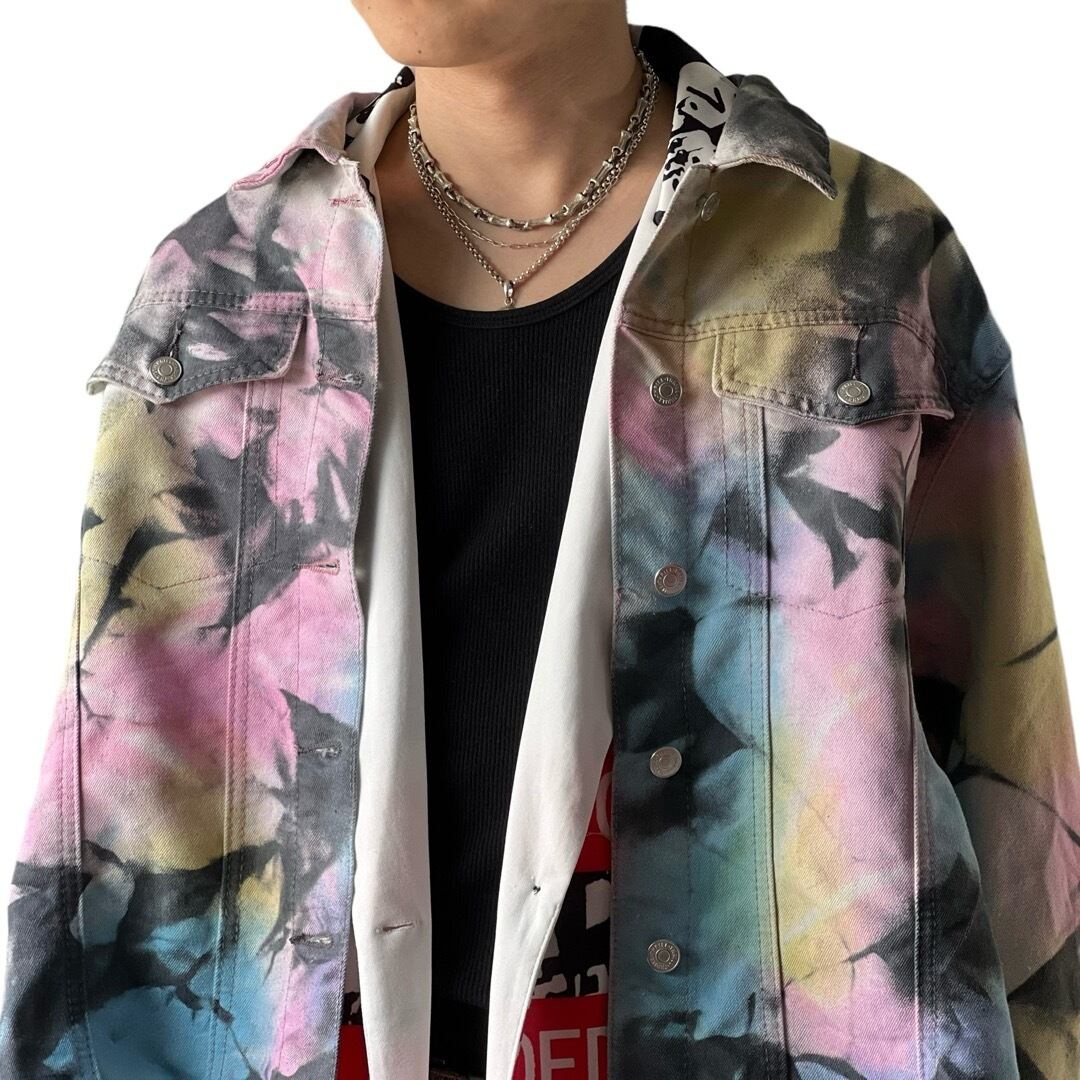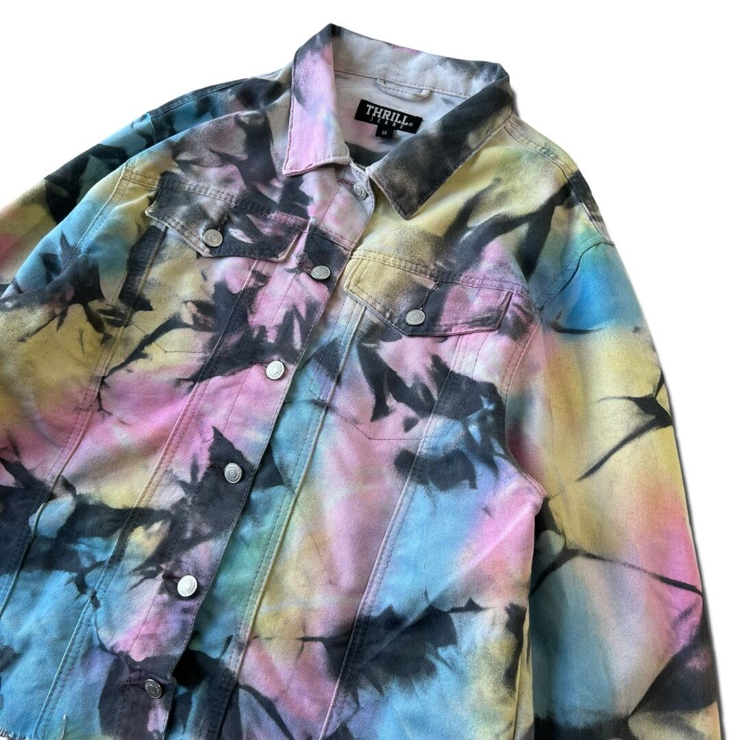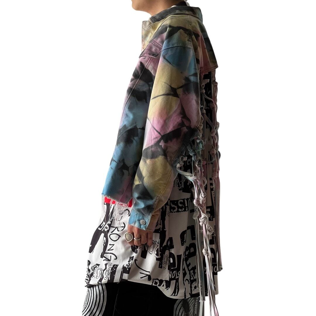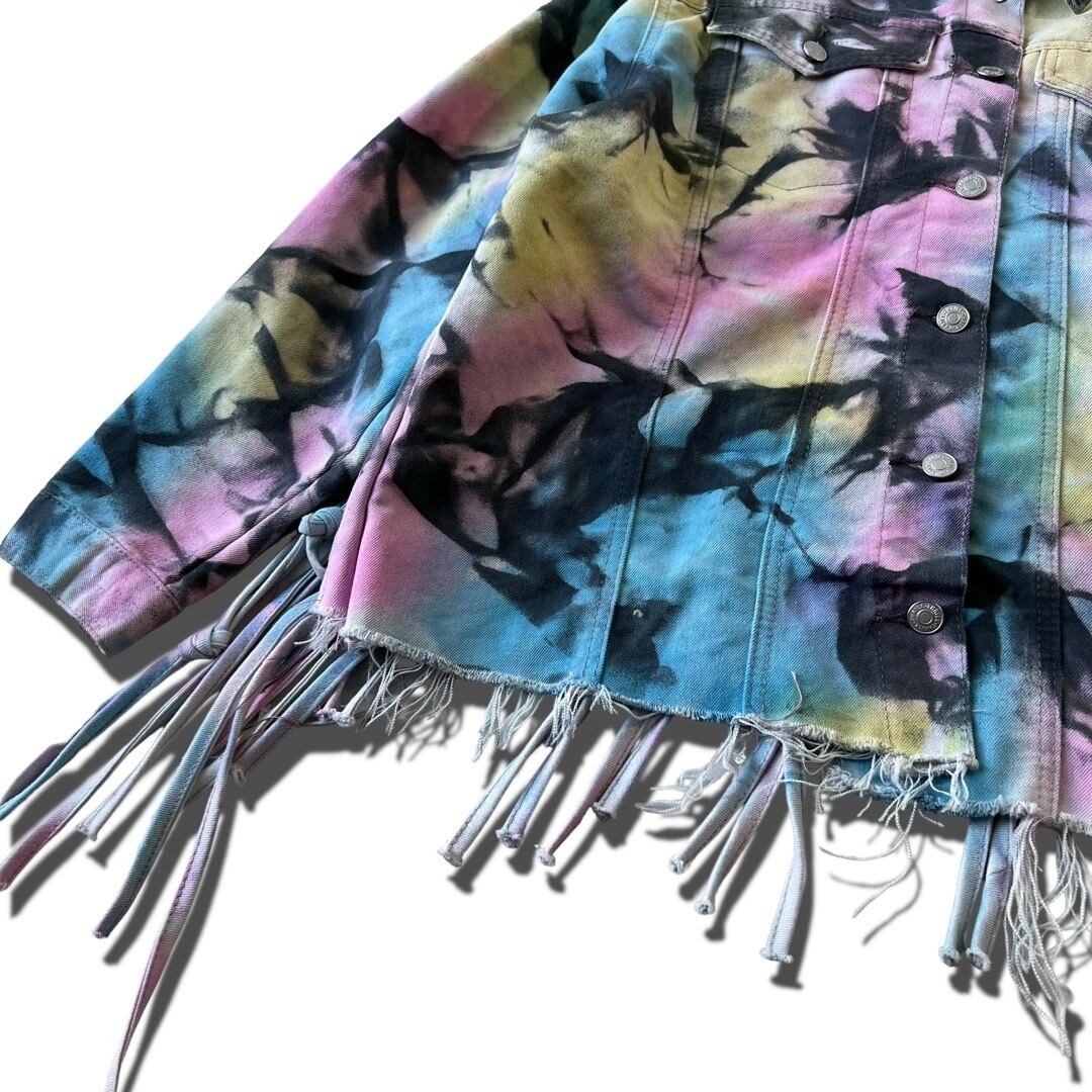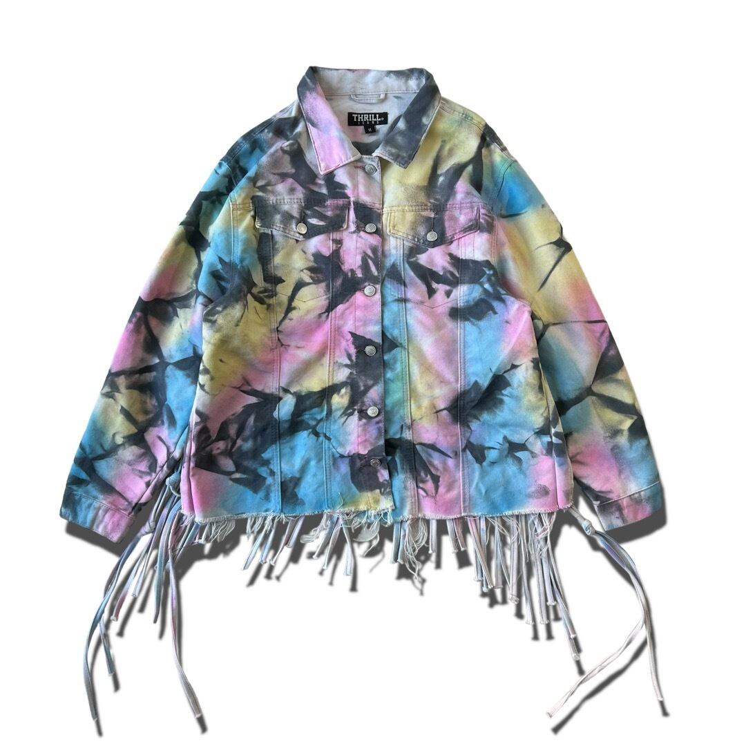 【THRILL JEANS】Tie-dye Art Swiching Fringe design Denim tracker jacket