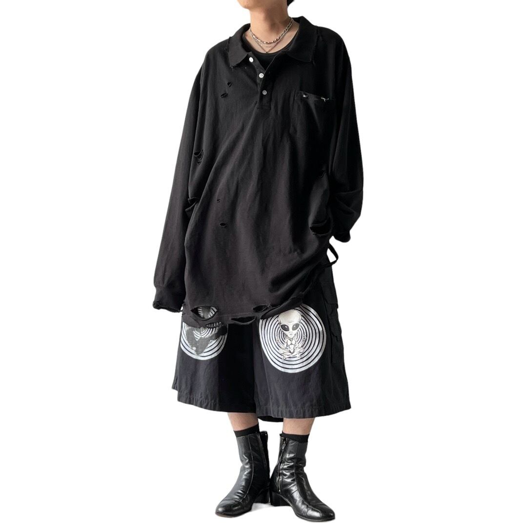 【KINGSIZE】 "crush design" Oversize Big L/S polo shirt / size:3XL