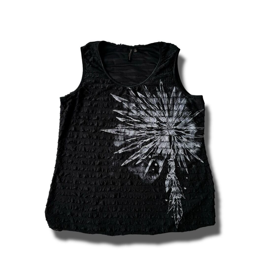 縮絨加工のボディに大きく一輪のお花をデザインしたスリーブレスアイテム!!