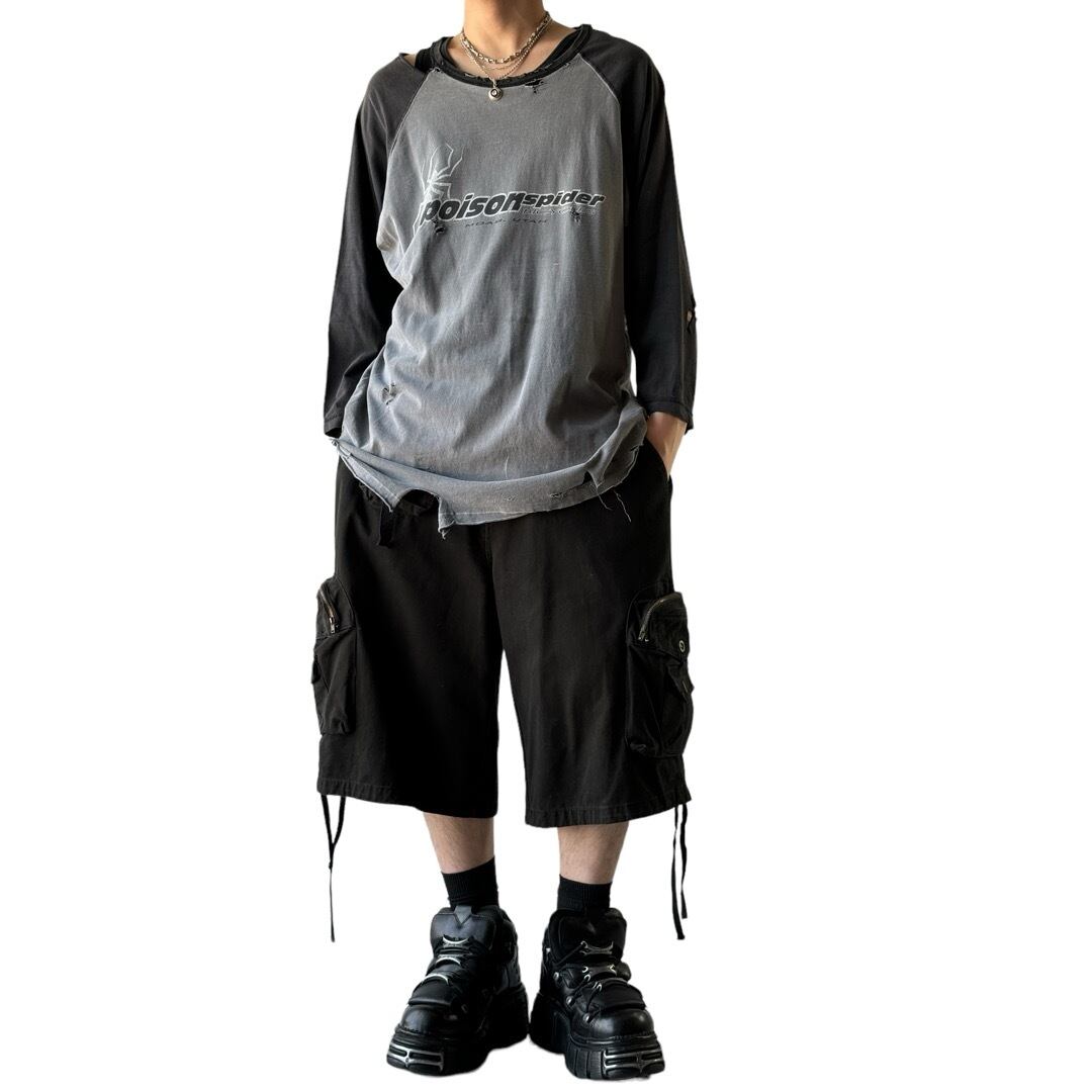超ハードにクラッシュしたグランジテイストなムードがクールなデザインラグランスリーブtee‼️