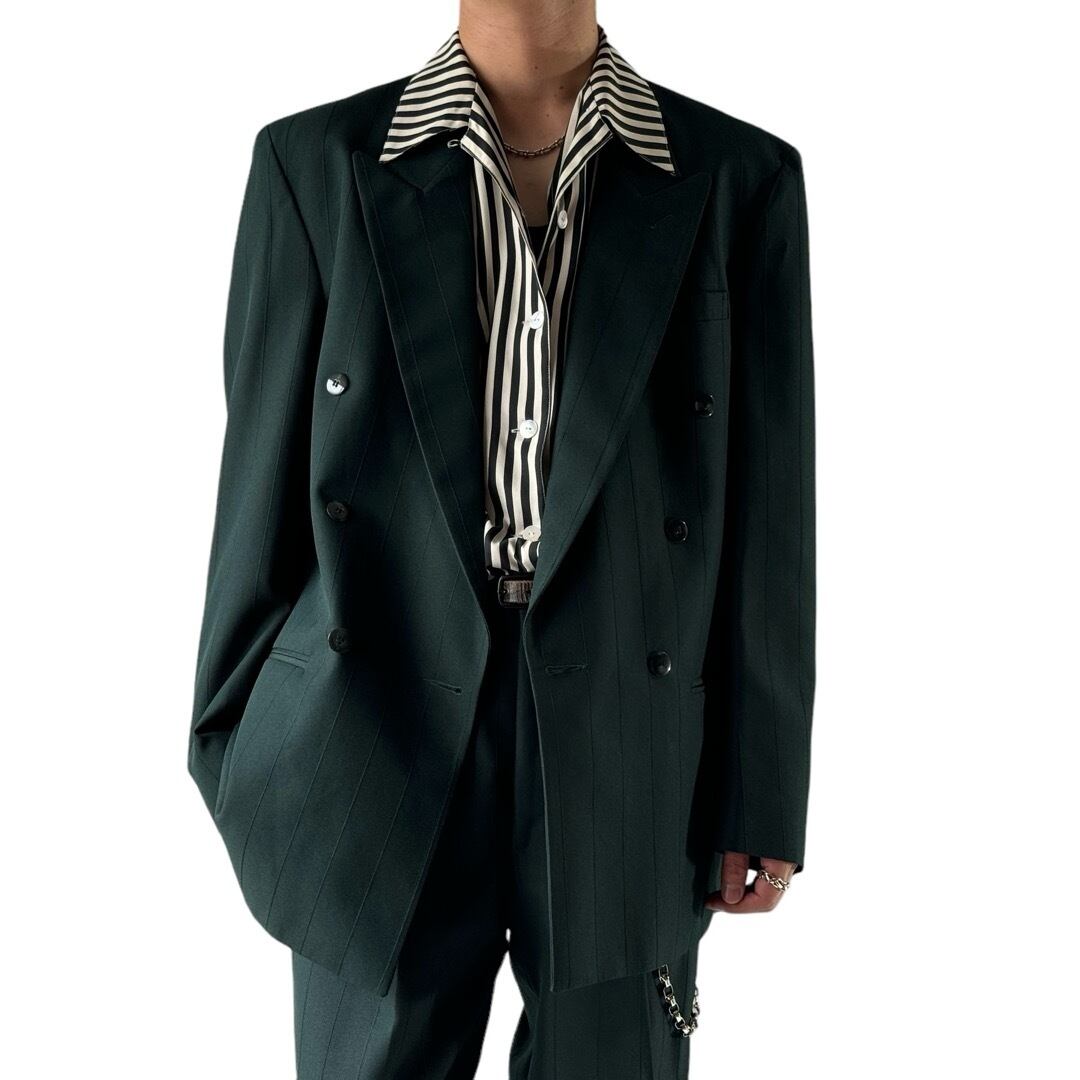 ♾️80's Champagne♾️ design stripes double breasted set up -Green- MADE IN U.S.A