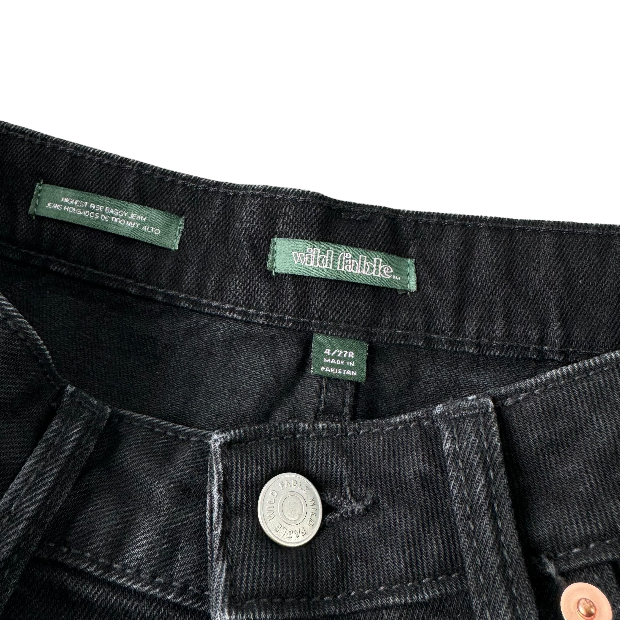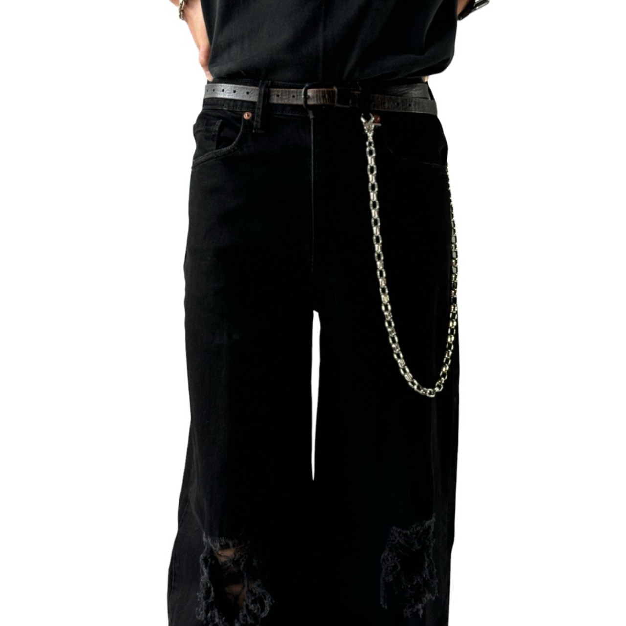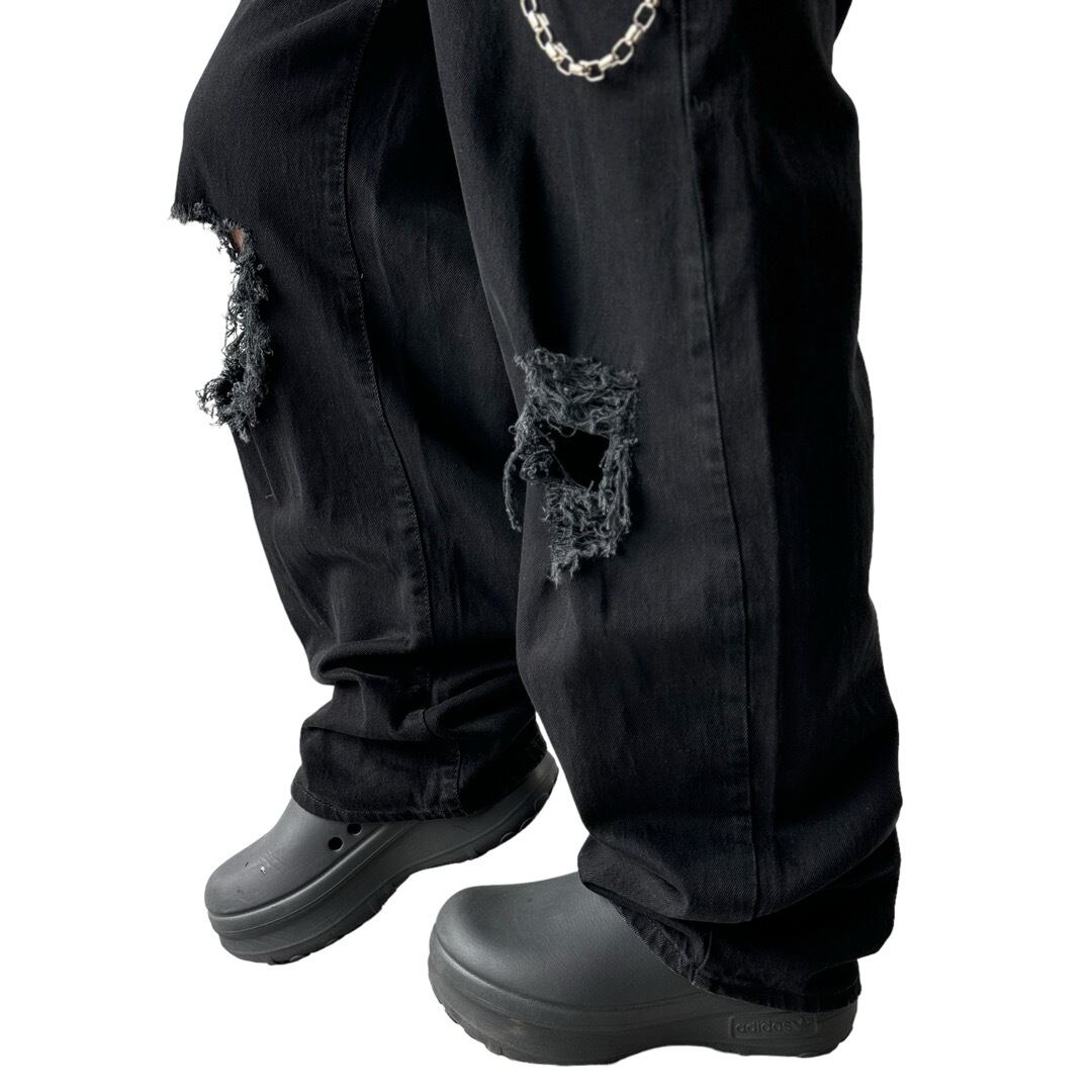 クラッシュ加工を施したデザインブラックデニムパンツ❗️