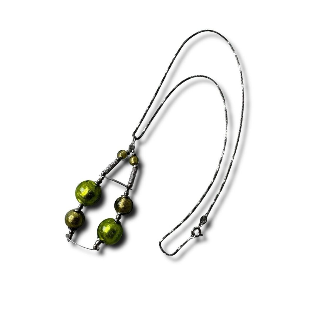 緑と黄緑の球体がセットされた独特な雰囲気を醸し出すデザインネックレス✨