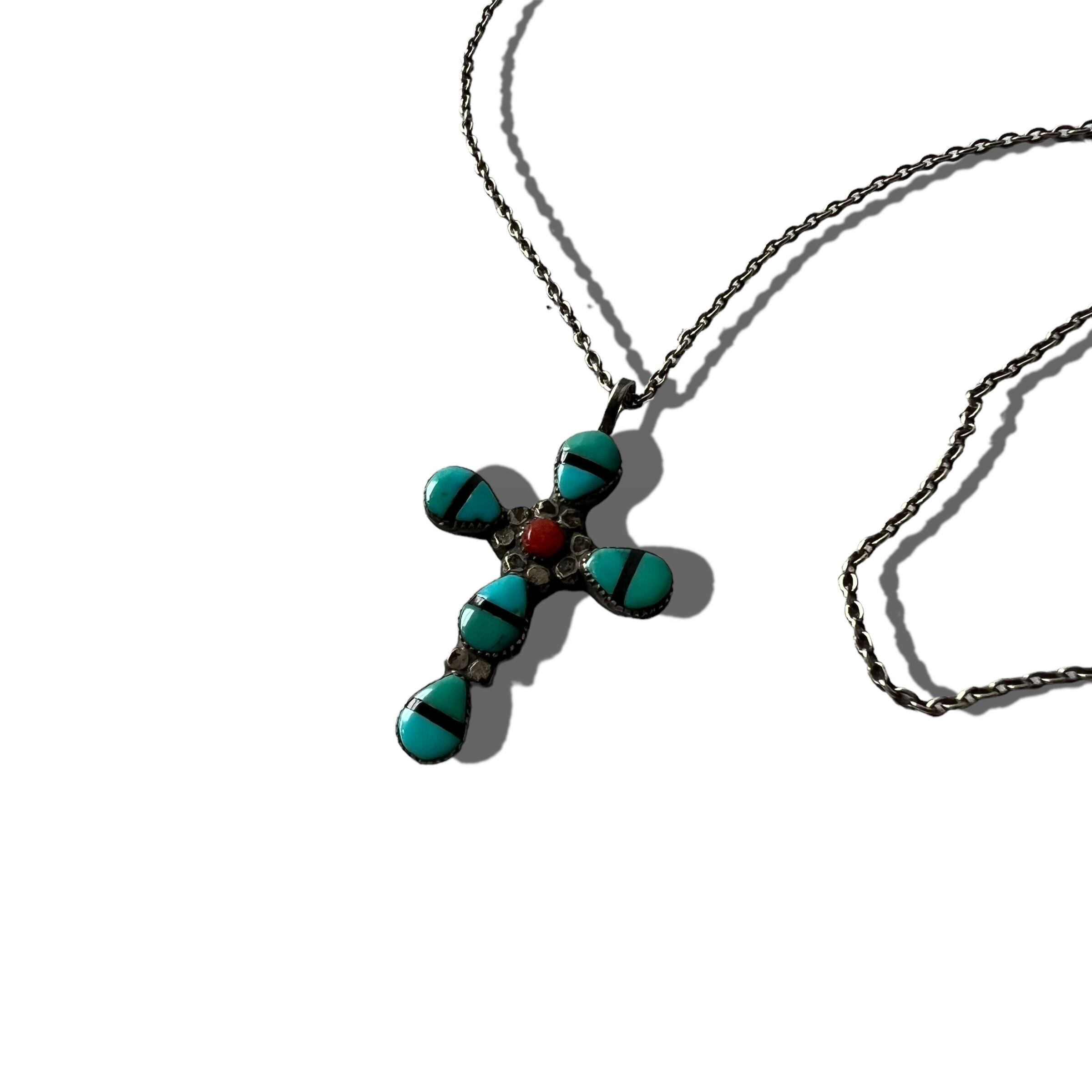 ターコイズカラー、エナメルなどコンビネーションになったヴィンテージでは珍しいクロスモチーフのクールなデザインネックレス!!!