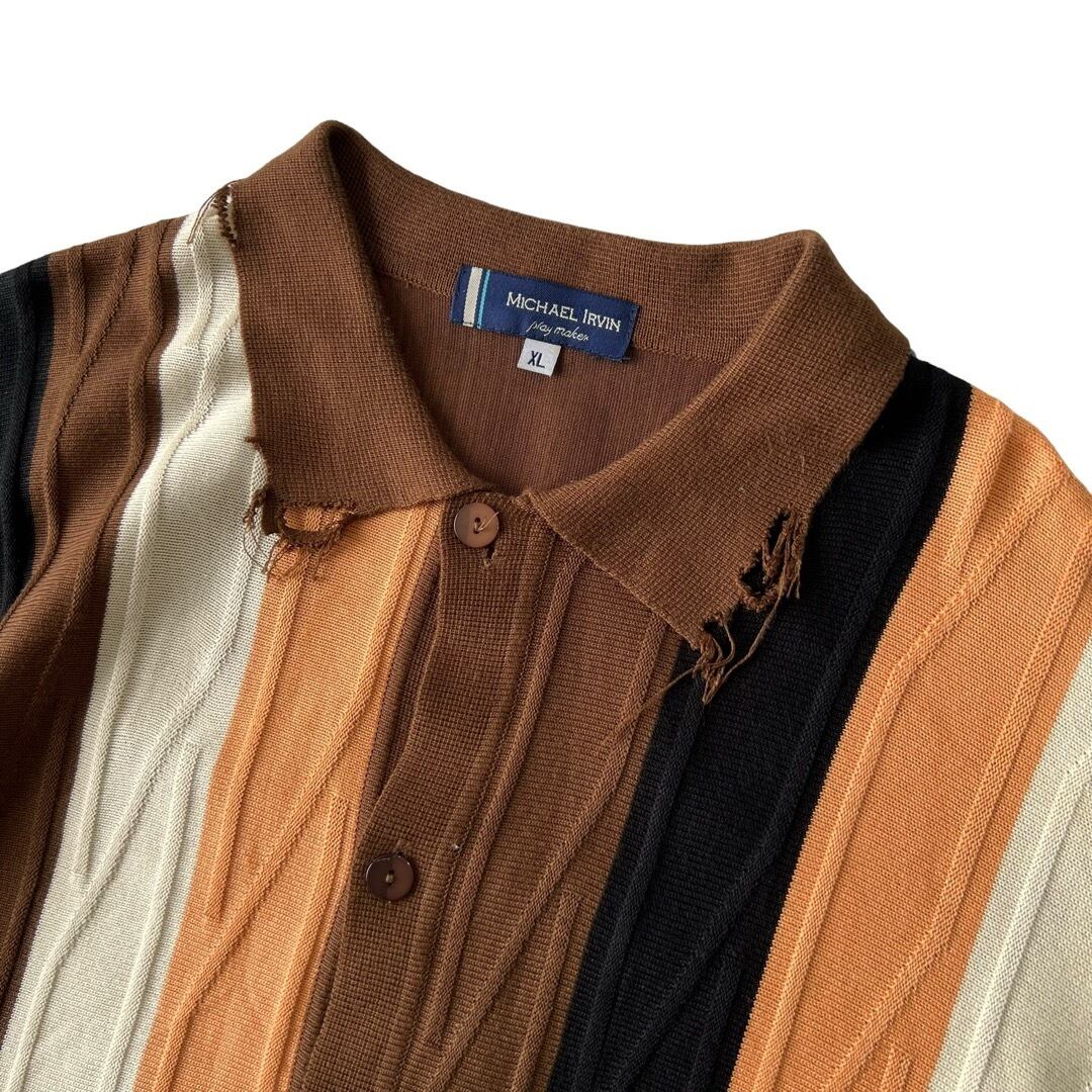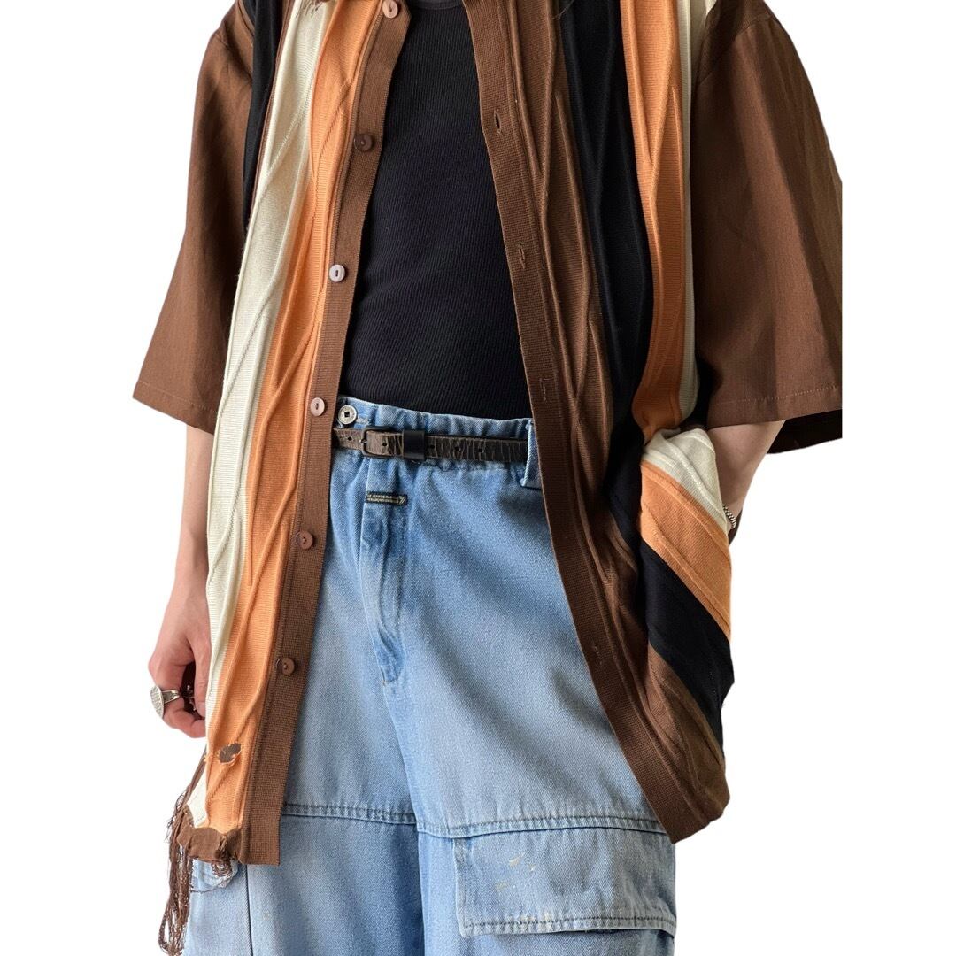 【michael lrvin】 Damage Fringe Type Front swiching S/S Summer knit shirt