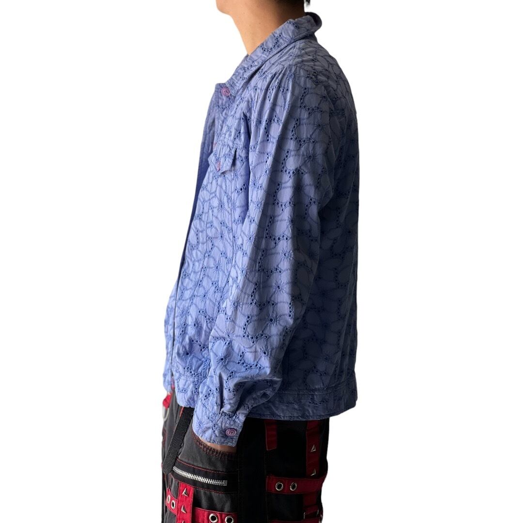 全体にカットアウトデザインと刺繍で凹凸な雰囲気が素敵な特徴的なデザインのトラッカージャケット❗️ 中々同じことの真似は大変なクオリティ‼️