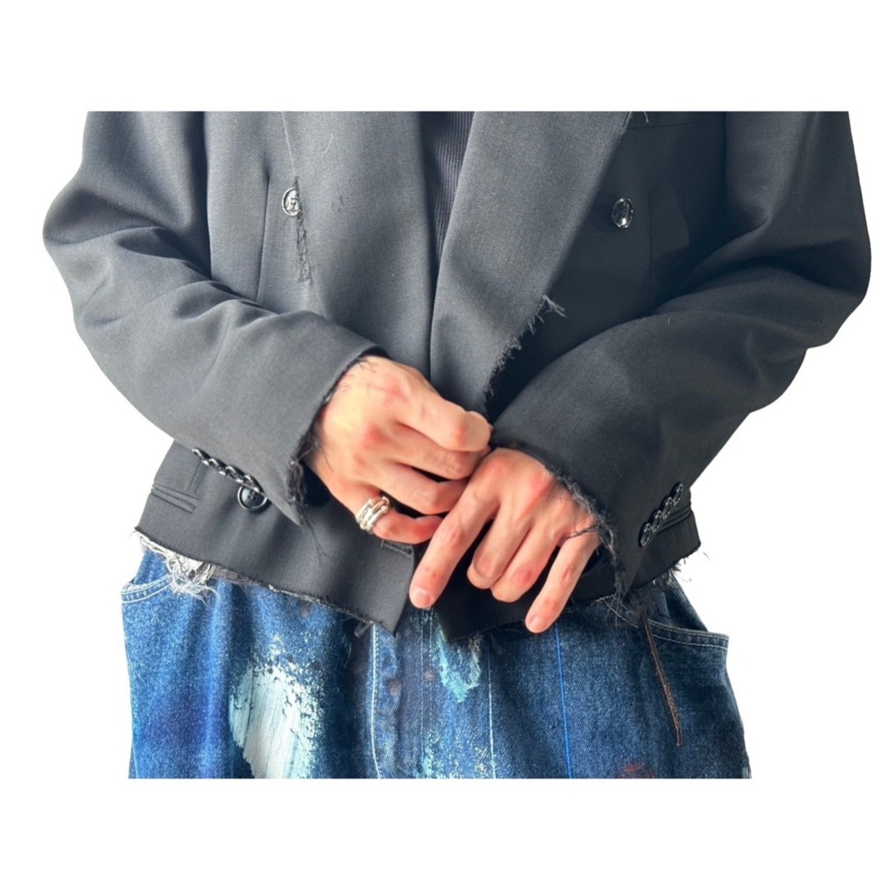 上質ないいジャケット素材に洗練されたダメージデザインとショート丈にカスタムされた美しいシルエットがモードで最高の1枚✨