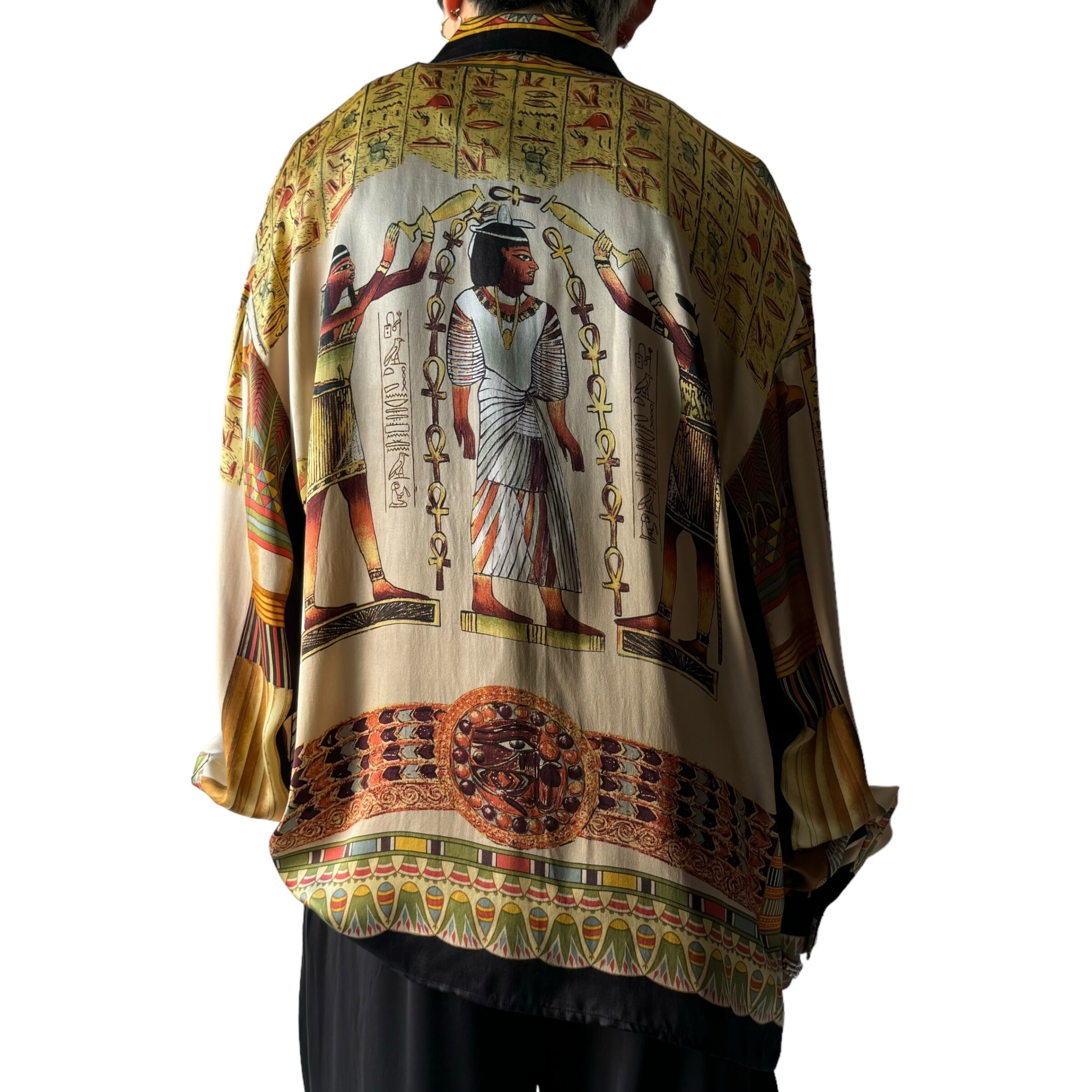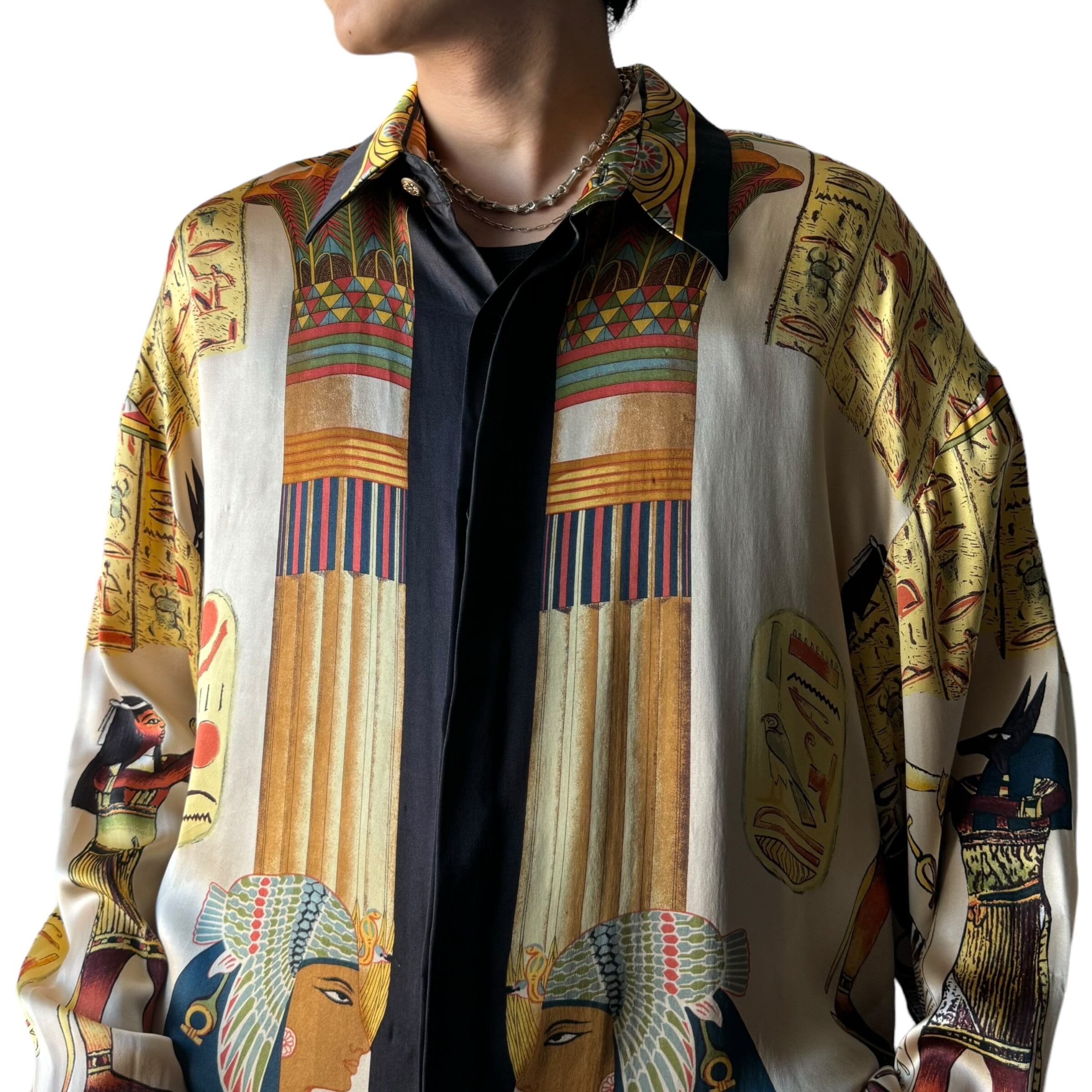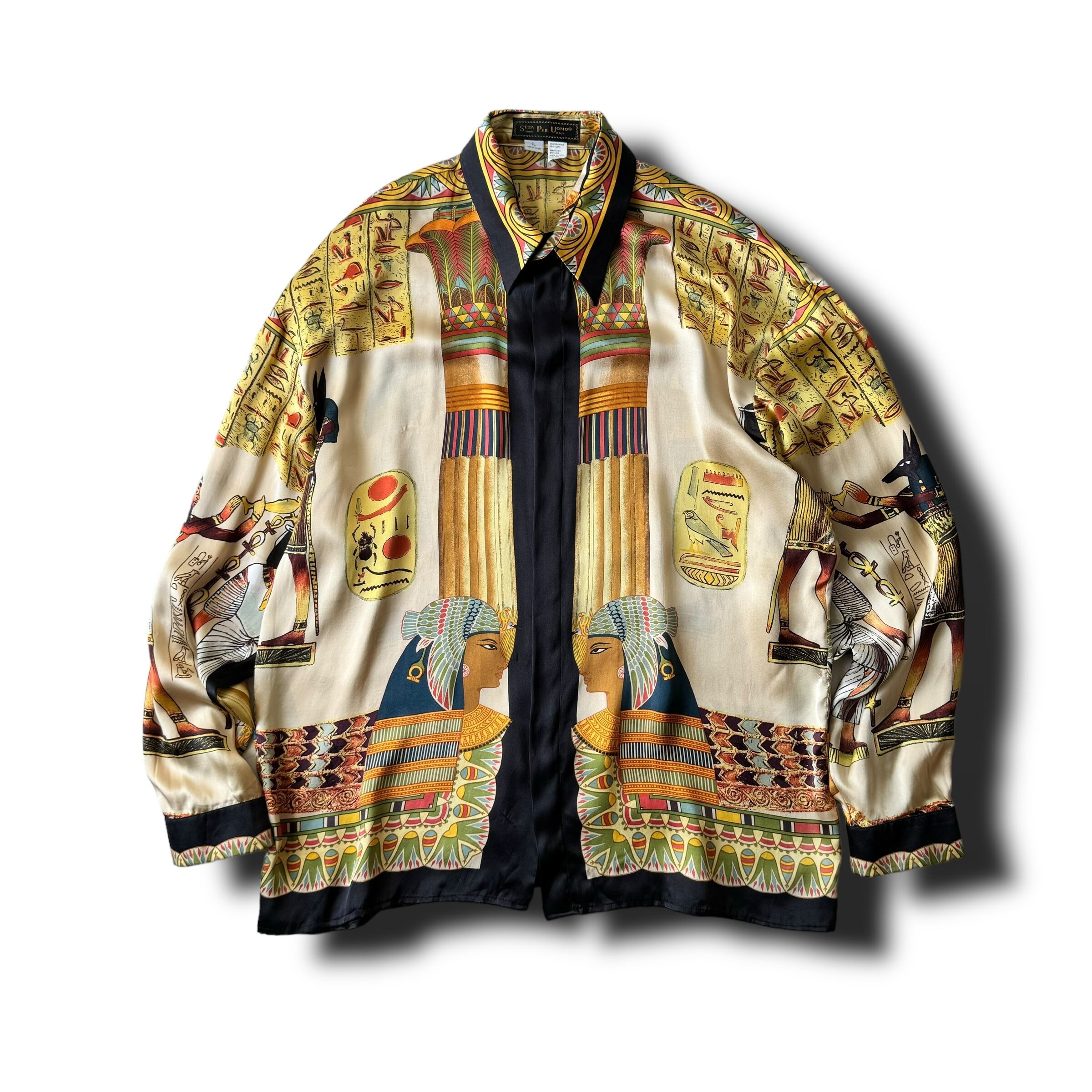 ♾SETA PER UOMO♾ design motif scarf patterned L/S silk shirt size L