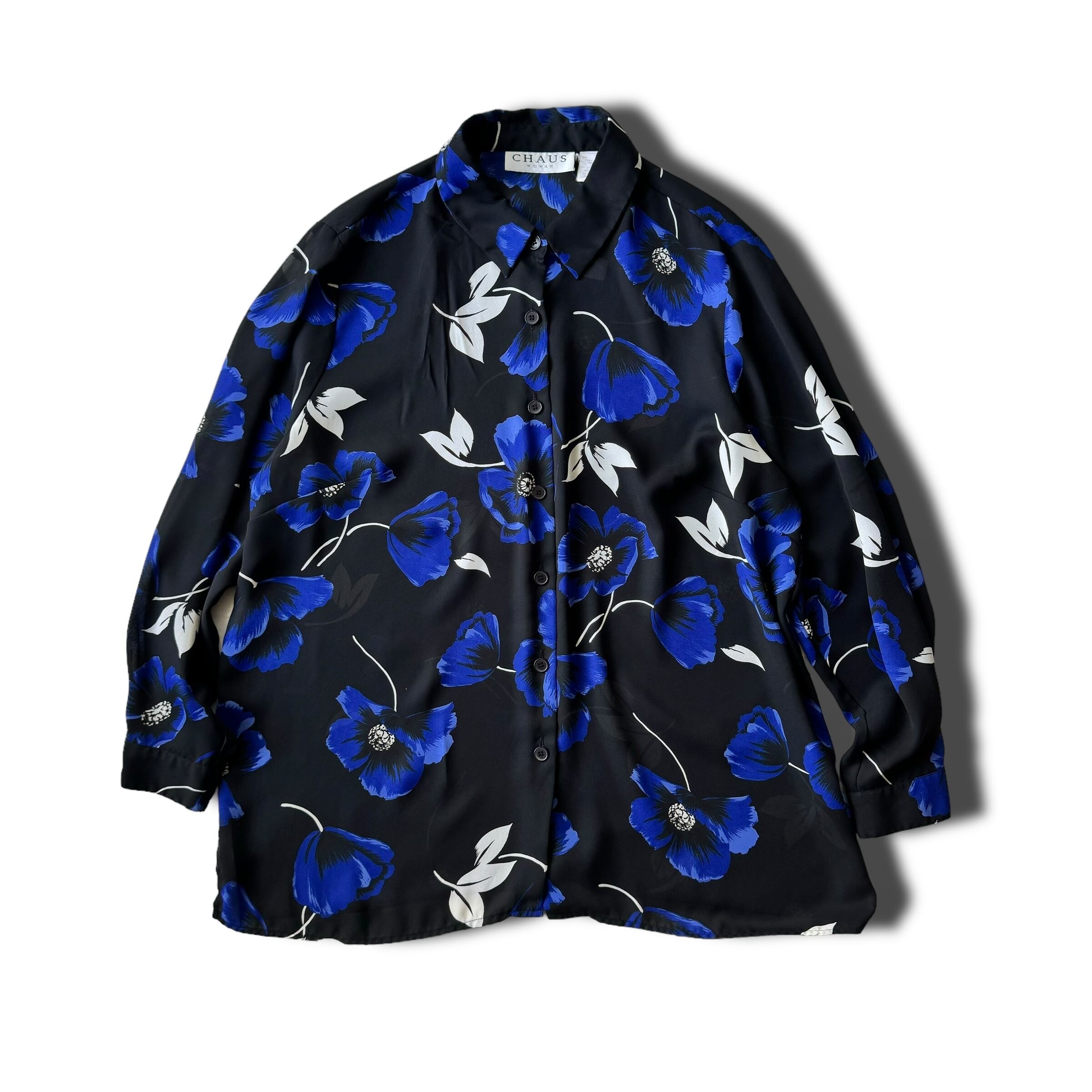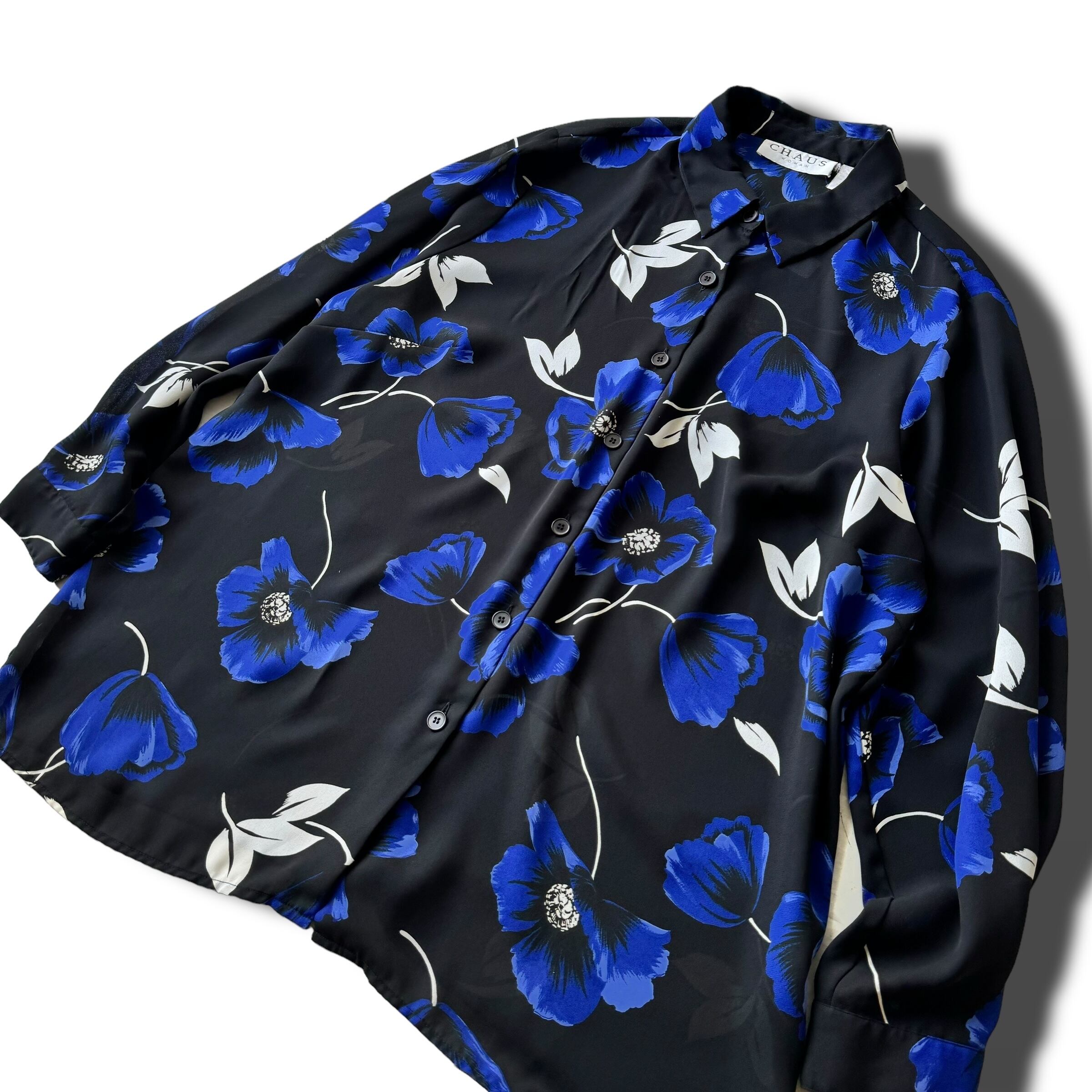 ♾CHAUS♾ flower patterned design L/S sheer shirt