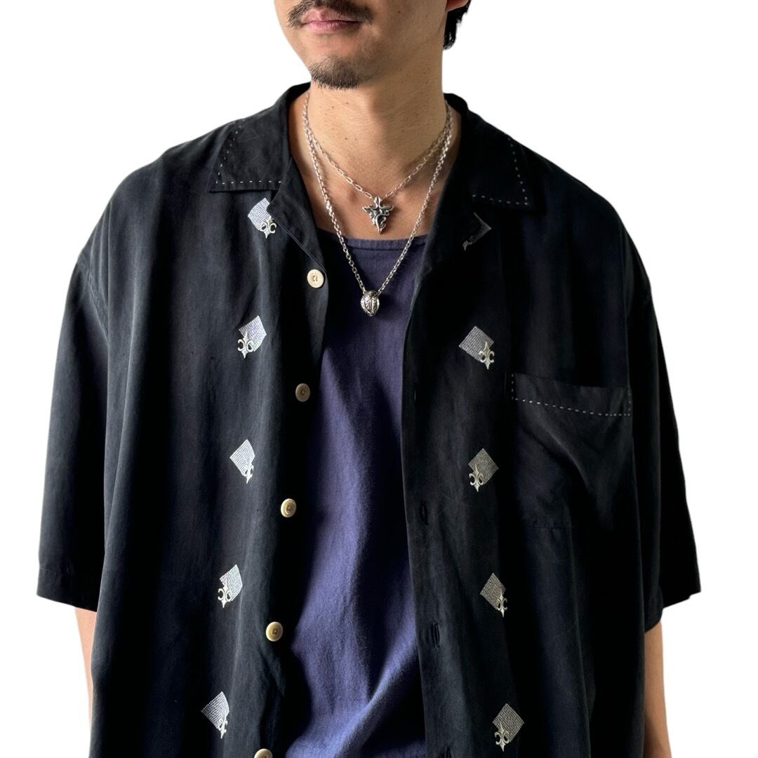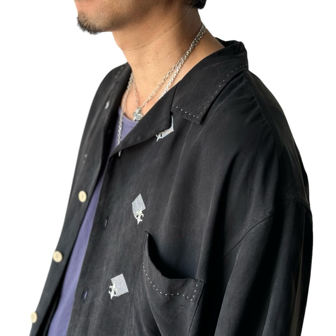 フロントに菱形模様とBSフレアの刺繍を施したデザインがシンプルながらもお洒落さを惹き立たせてくれるデザインシルクシャツ✨