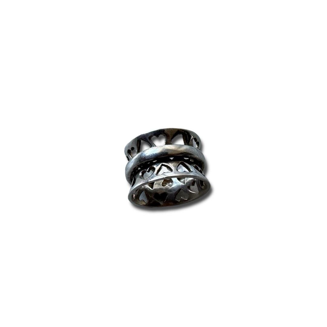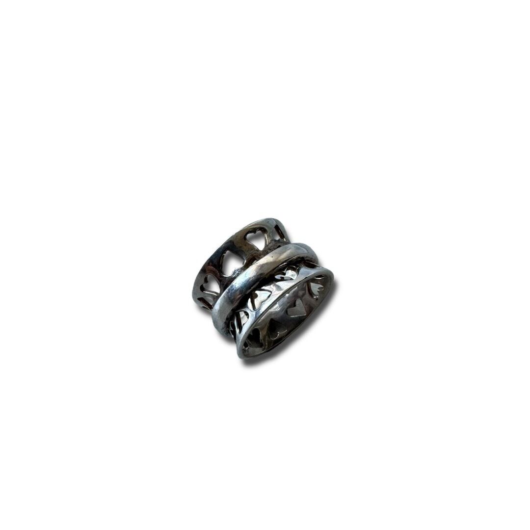 ♾vintage silver jewelry♾ heart motif wide ring size15号 sv925