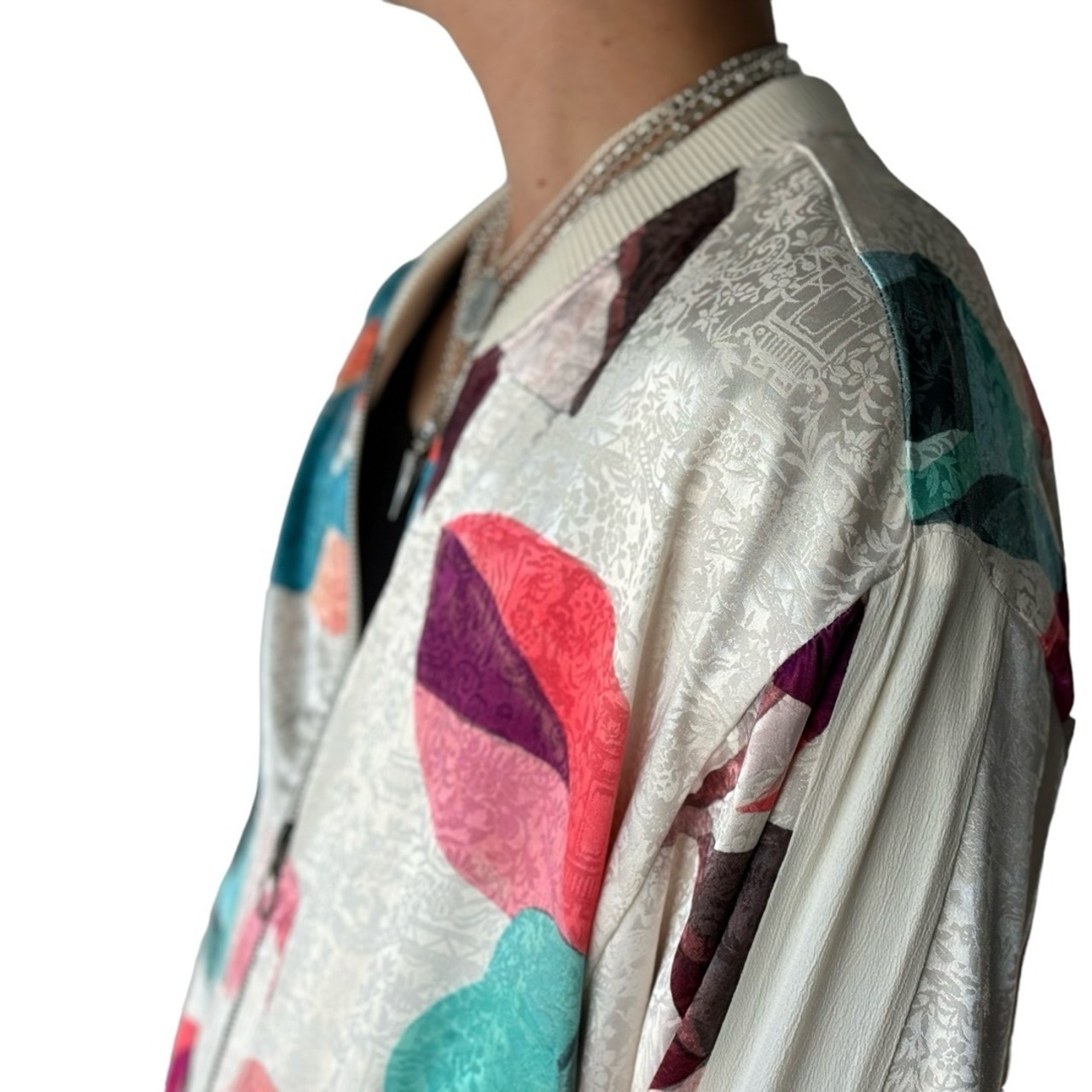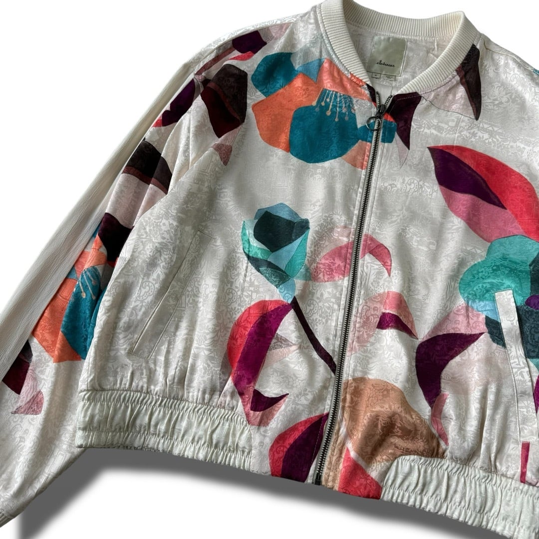 アートなBIGフラワーパターンと余白を埋め尽くすようにデザインされた細かな柄が高級感あるショートレングスジャケット‼️