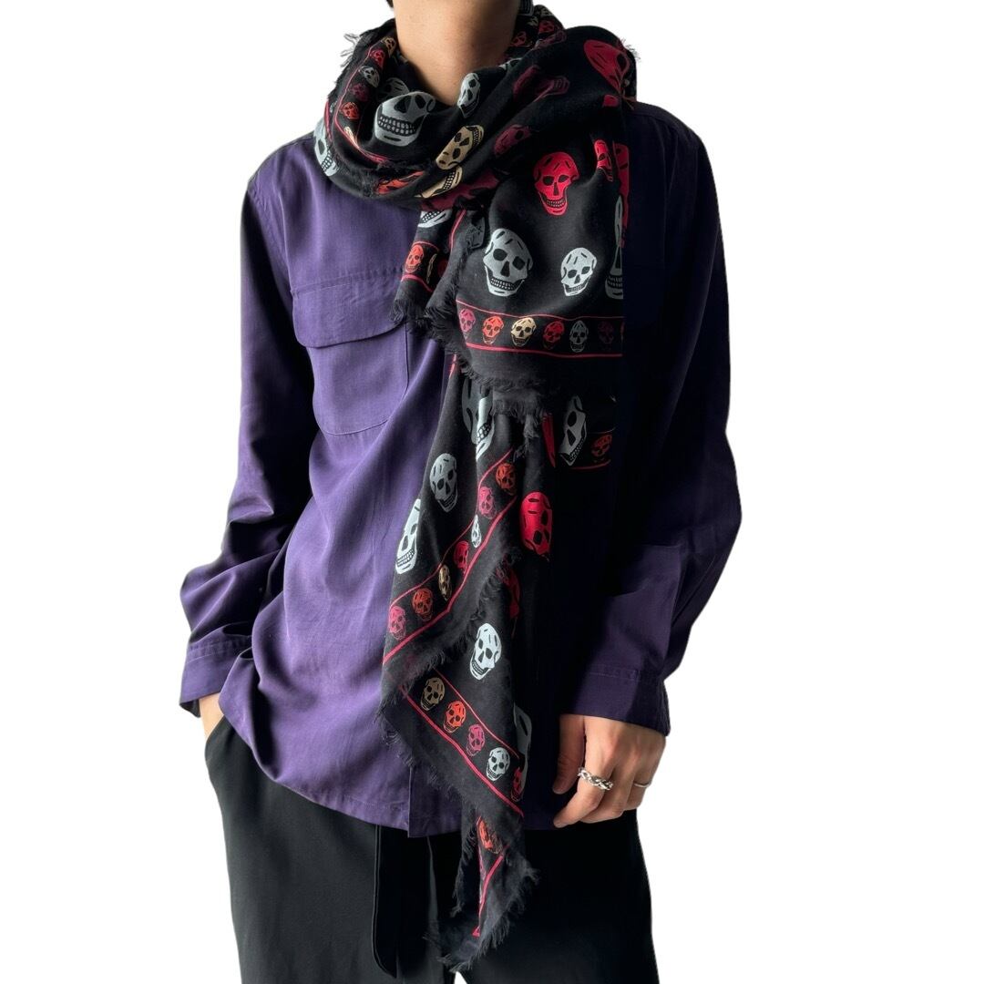 ドクロの総柄デザインがインパクト抜群なマックイーンのショールがお入荷✨️