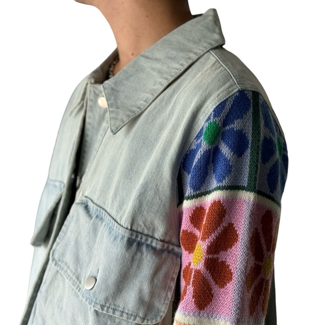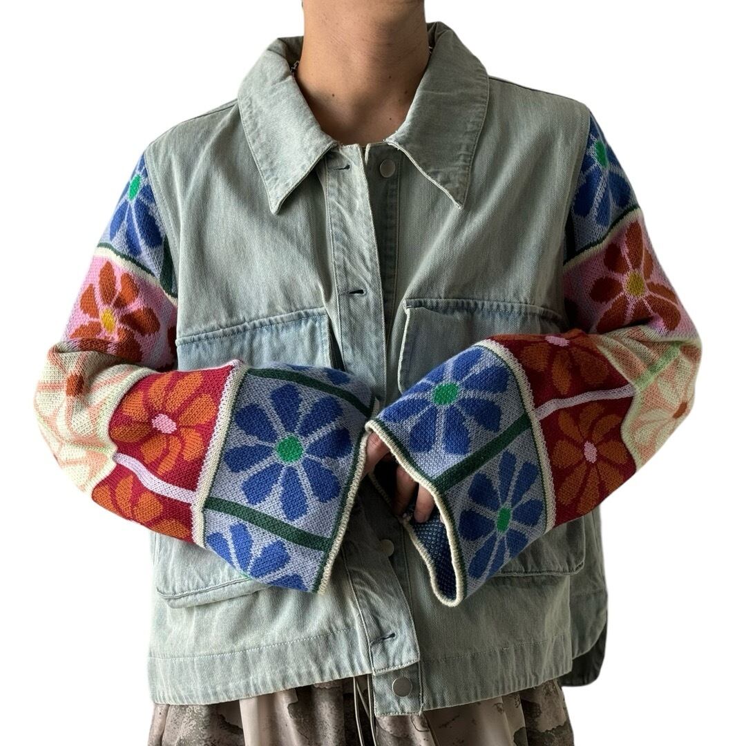 ♾️Davi&Dani♾️ design knitting sleeve denim jacket size XL