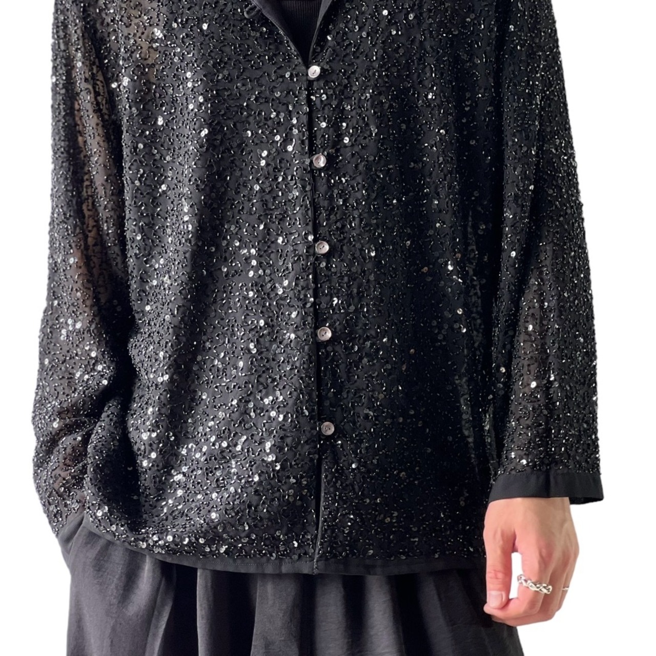 【CHICO'S DESIGN】Beads Sequins decoration sheer design shirt