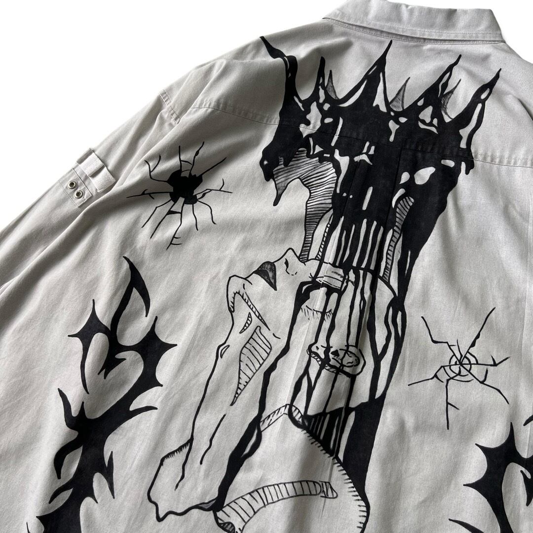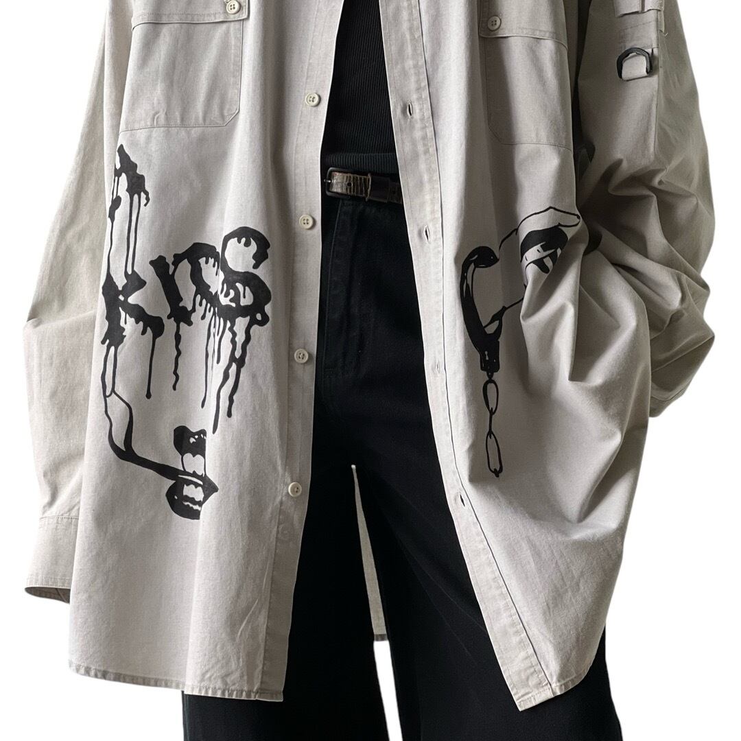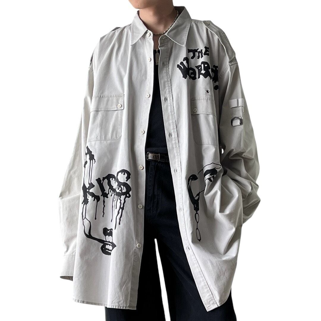 【90s KINGSIZE】"hand paint custom" military detail work shirt / size:4XL