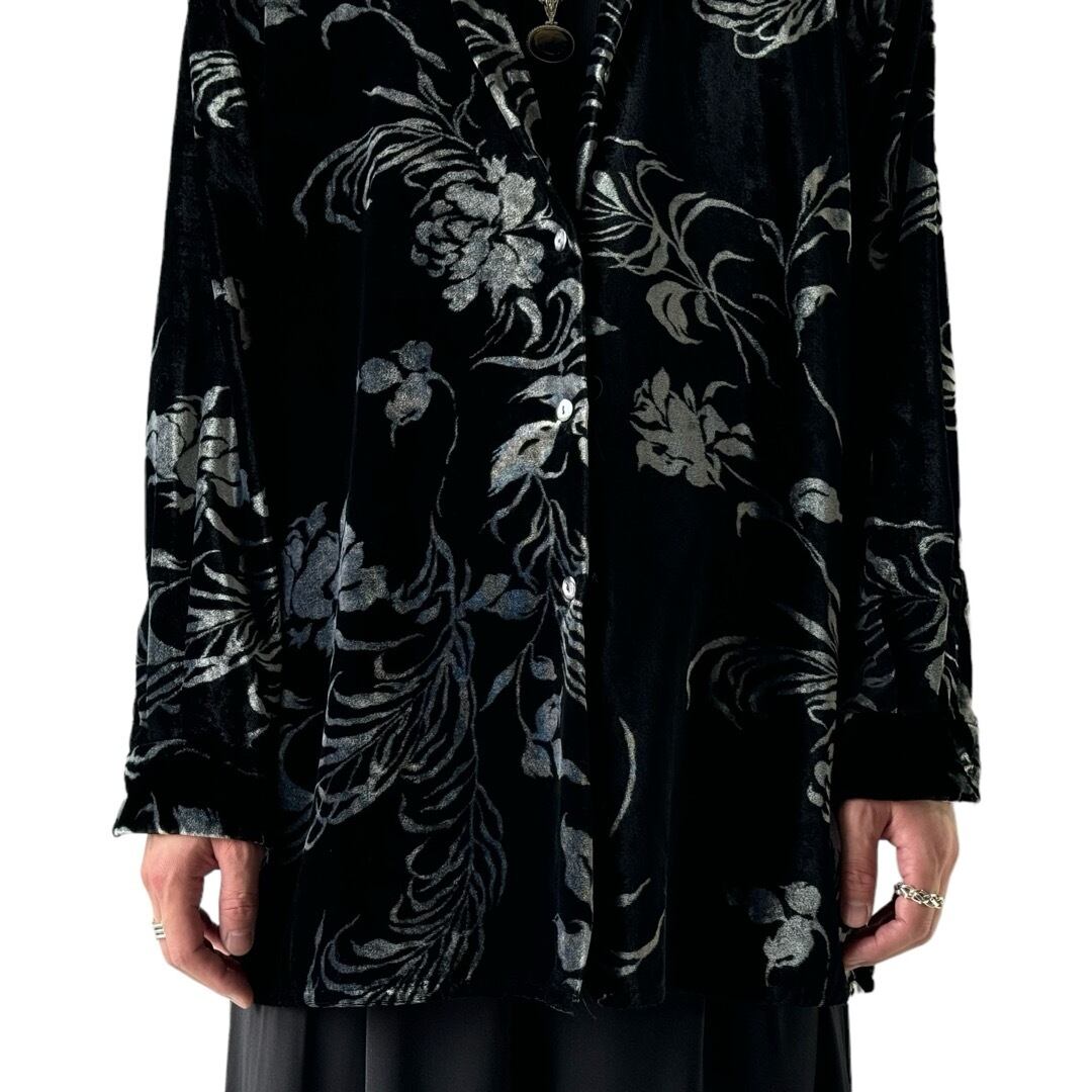 ♾️DENIM&CO.♾️ botanical pattern Rayon velours shirt